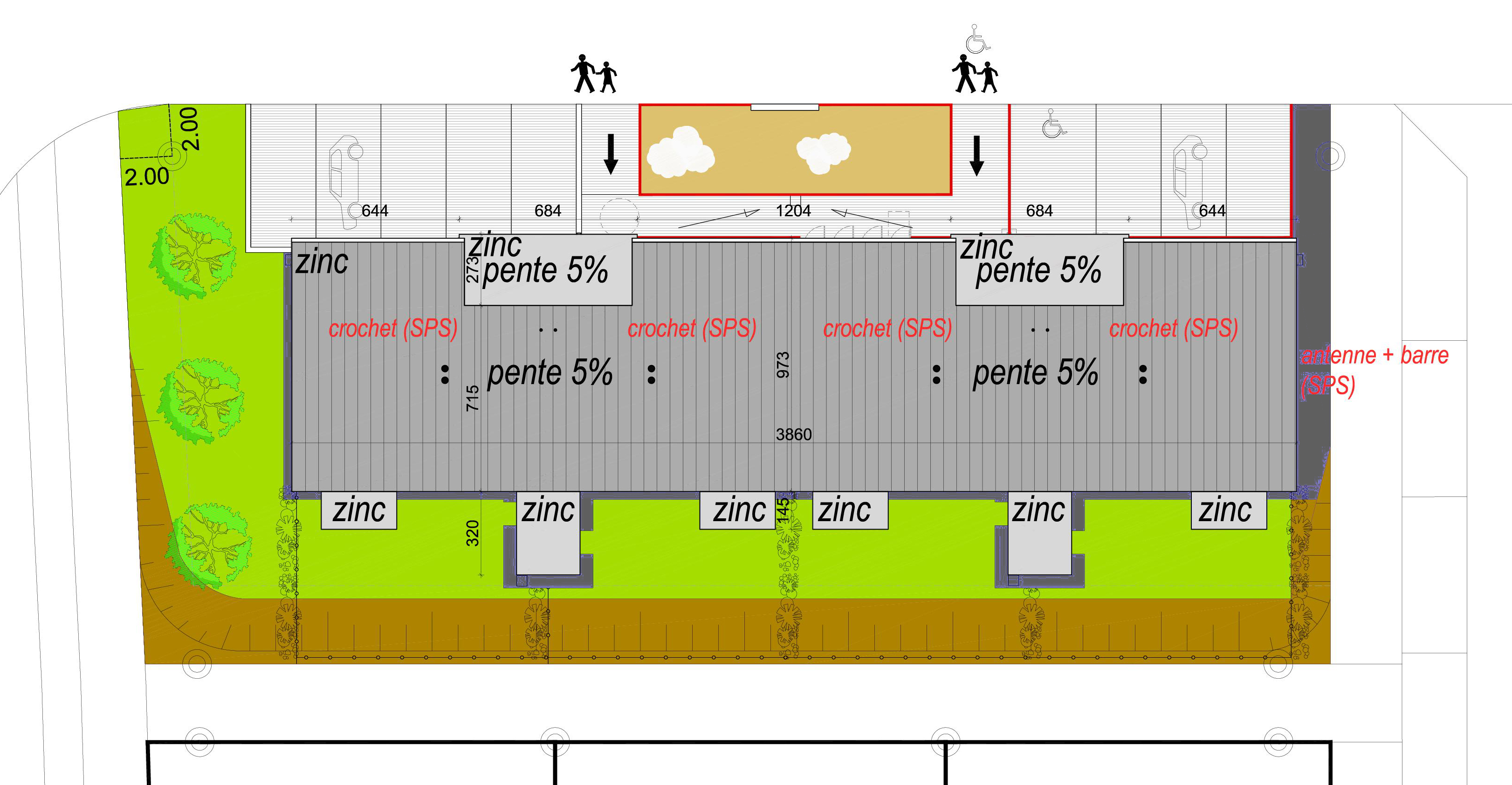 Le projet porte sur un immeuble de 8 logements collectifs locatifs sociaux (7 TIII et 1 TII) pour CÔTES d’ARMOR HABITAT sur la commune de PLAINTEL. composé : - d'un RdC en maçonnerie avec enduit blanc - de celliers en ossature bois bardée de lame de douglas et de balcons qui rythment la façade sud - d'un étage en ossature bois bardé de lame de bois Douglas naturel, de panneaux composite gris et d'un couronnement en zinc - d'une façade nord d'éléments en "plein" et en "creux" recevant les circulations extérieures en structure métallique - d'une couverture en zinc à joint debout " gris quartz"