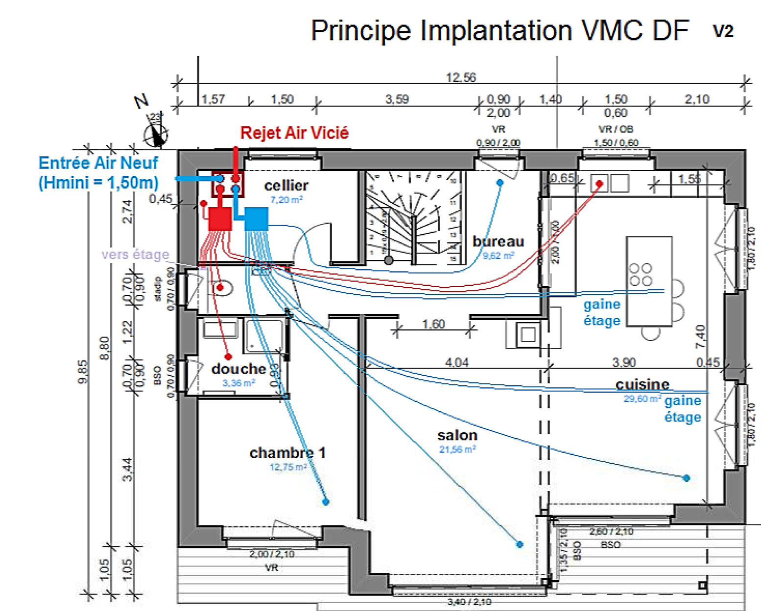 Descriptif technique : Maison passive avec des murs avec montants d'ossature de 240 mm x 60 mm. Maison Haute Performance Energétique