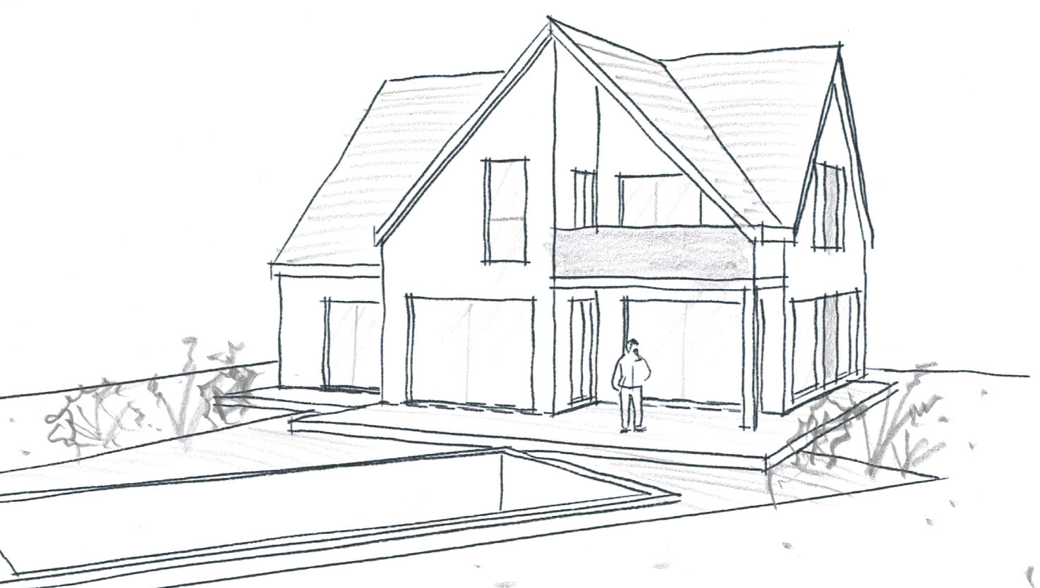 Situé en cœur de village, le projet de construction s’est déroulé tout naturellement, entre l’envie de s’intégrer dans le village traditionnel et l’envie de construire une maison bioclimatique passive. Les toitures sont à deux pans couvertes de tuiles rouge, le bardage bois naturel, sera disposé de manière contemporaine pour habiller les façades Nord et ouest. Toutes les fenêtres sont en bois-alu triple vitrage, certifiées PHI. Cette véritable maison passive se chauffe uniquement avec un poêle à granulés faible puissance.