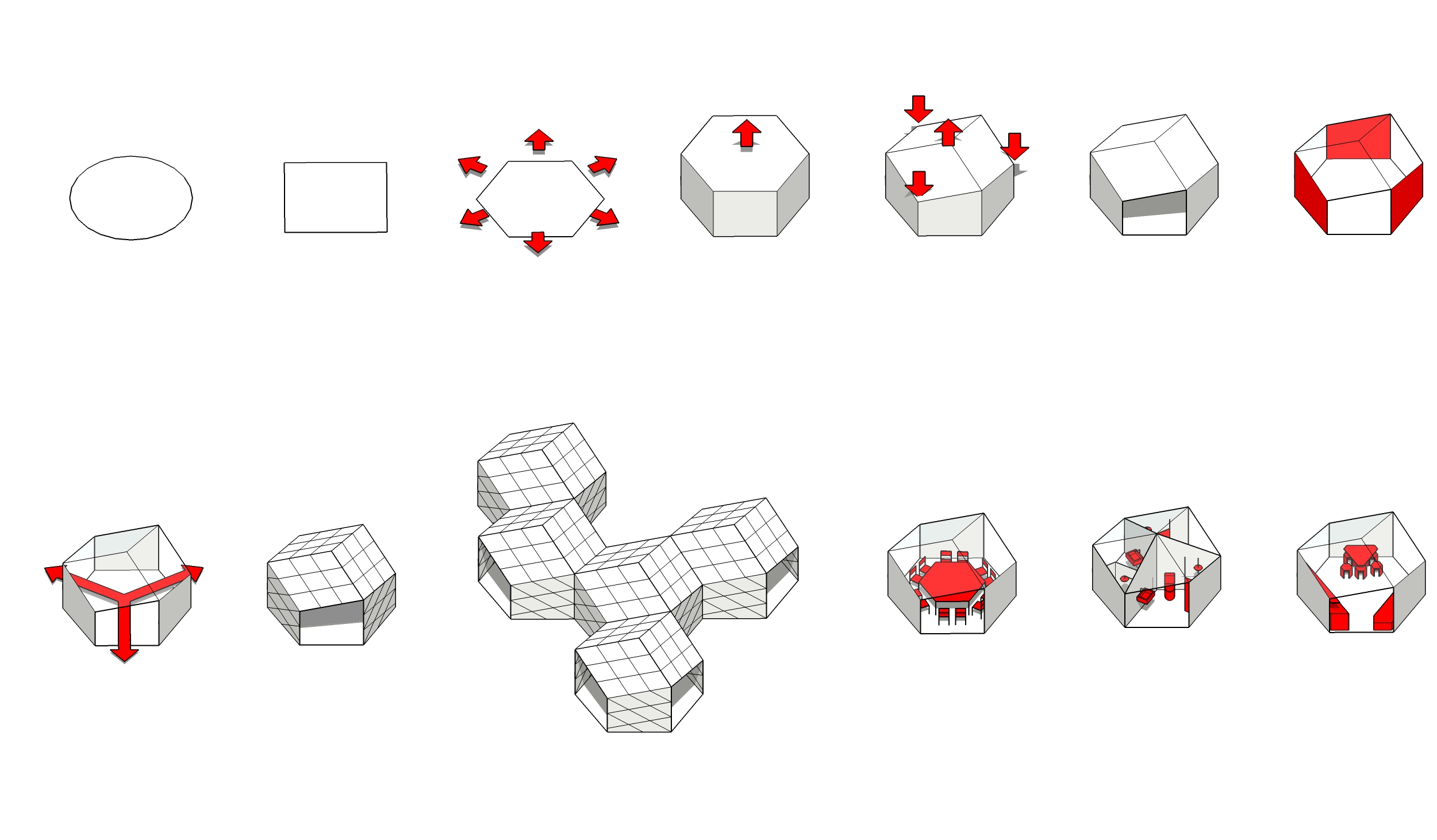 Approche environnementale : L'objet est inspiré par la yourte Mongole pour sa mobilité, par la maison à colombage pour sa durabilité et son système de couverture, par les constructions Japonaises pour la technicité de leur assemblage en bois. Le projet puise dans ces modes constructifs traditionnels pour inventer un projet contemporain ayant la capacité de se frotter aux problématiques actuelles .