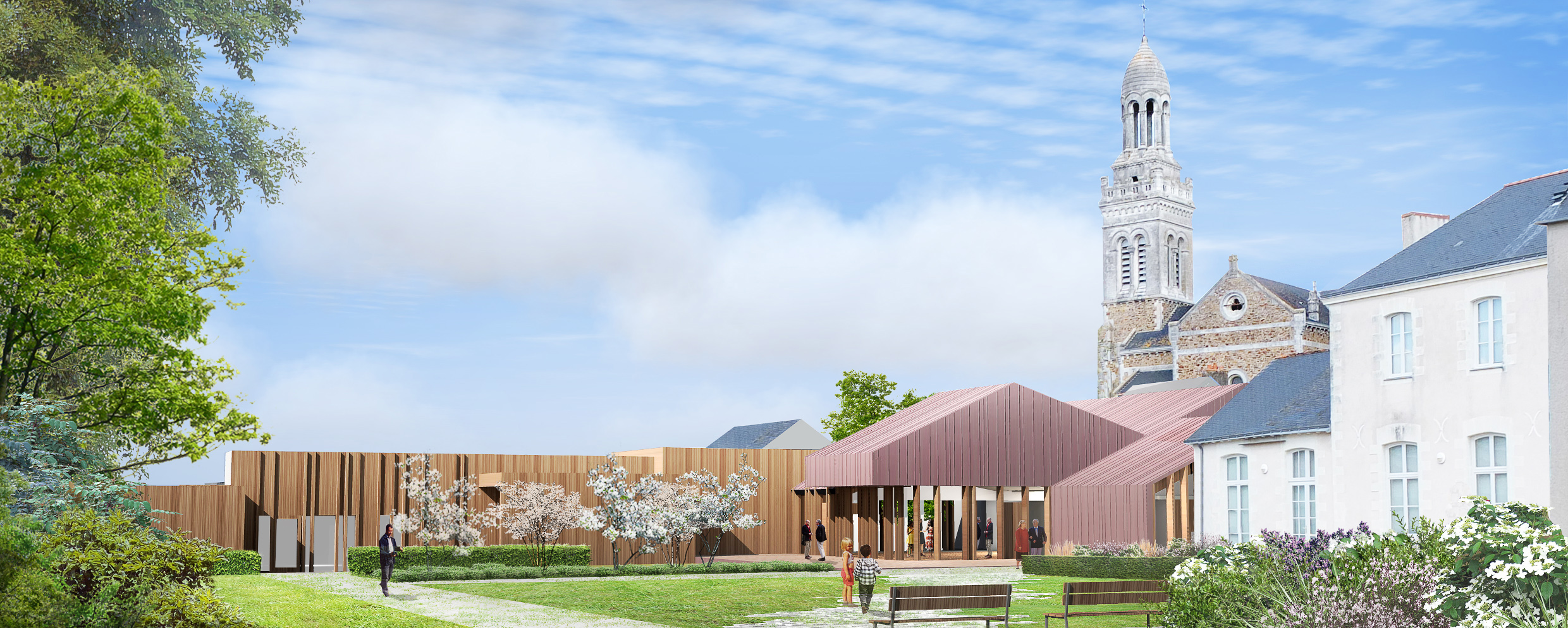 Approche environnementale : Son implantation en coeur de bourg est un choix fort pour privilégier les liaisons douces. Conçu en ossature bois, vêtu de zinc et de bois, le projet s'insère dans son contexte grâce à ces matériaux naturels. Une chaufferie bois alimente la salle ainsi que la mairie existante