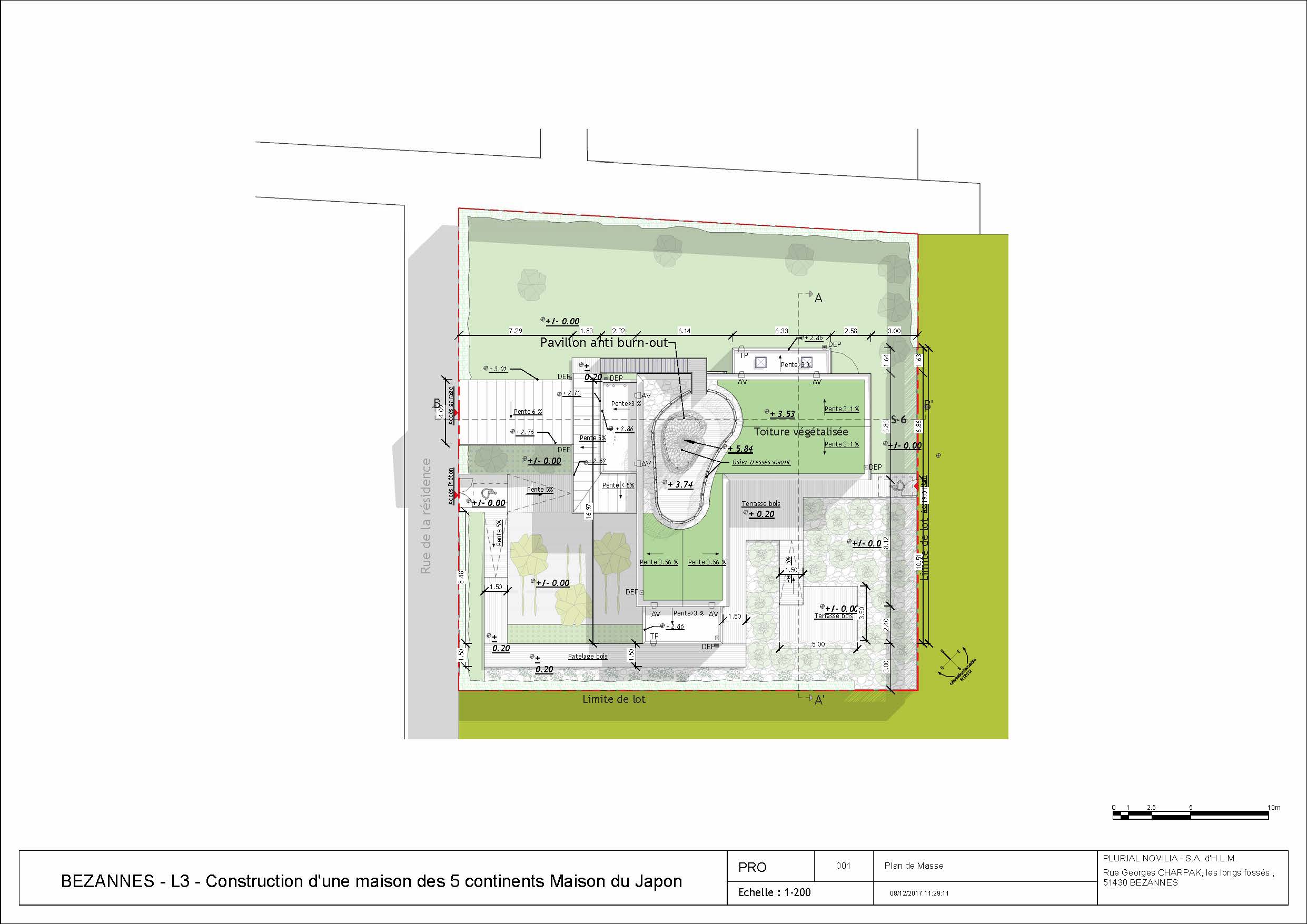 Descriptif technique de l'aménagement : La Maison de l’Asie, œuvre innovante par essence (l’Asie à Bezannes !), stimulante pour la créativité, puise son inspiration dans la construction domestique individuelle du Japon. Réalisée en bois (bois européens toutefois), matériau affiché, à l’extérieur et à l’intérieur, comme un révélateur de la performance technique, économique, énergétique, et environnementale de sa construction, elle offre grâce au bois, une grande qualité architecturale, une ambiance intérieure dépaysante, des espaces extérieurs soignés, traités comme autant de pièces de vie supplémentaires (systématique au Japon).