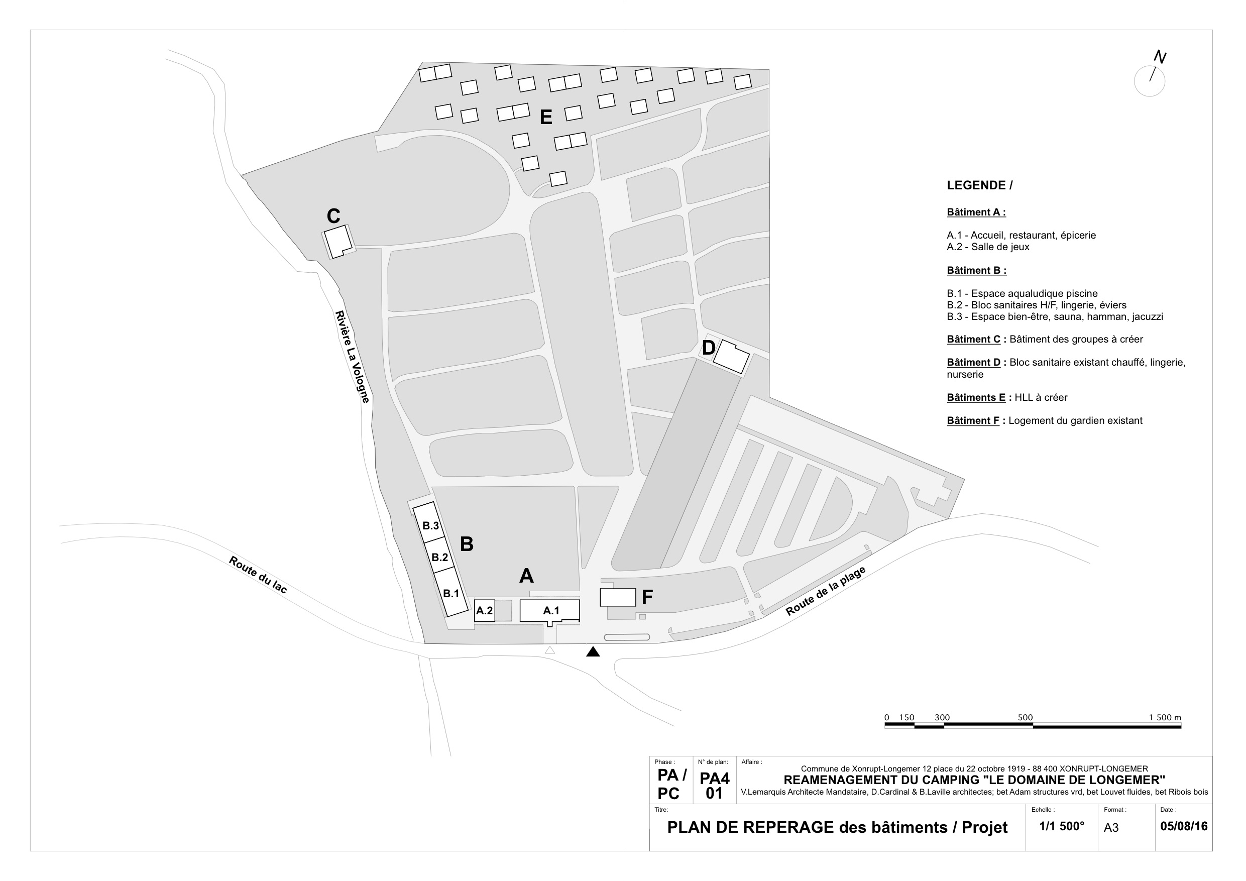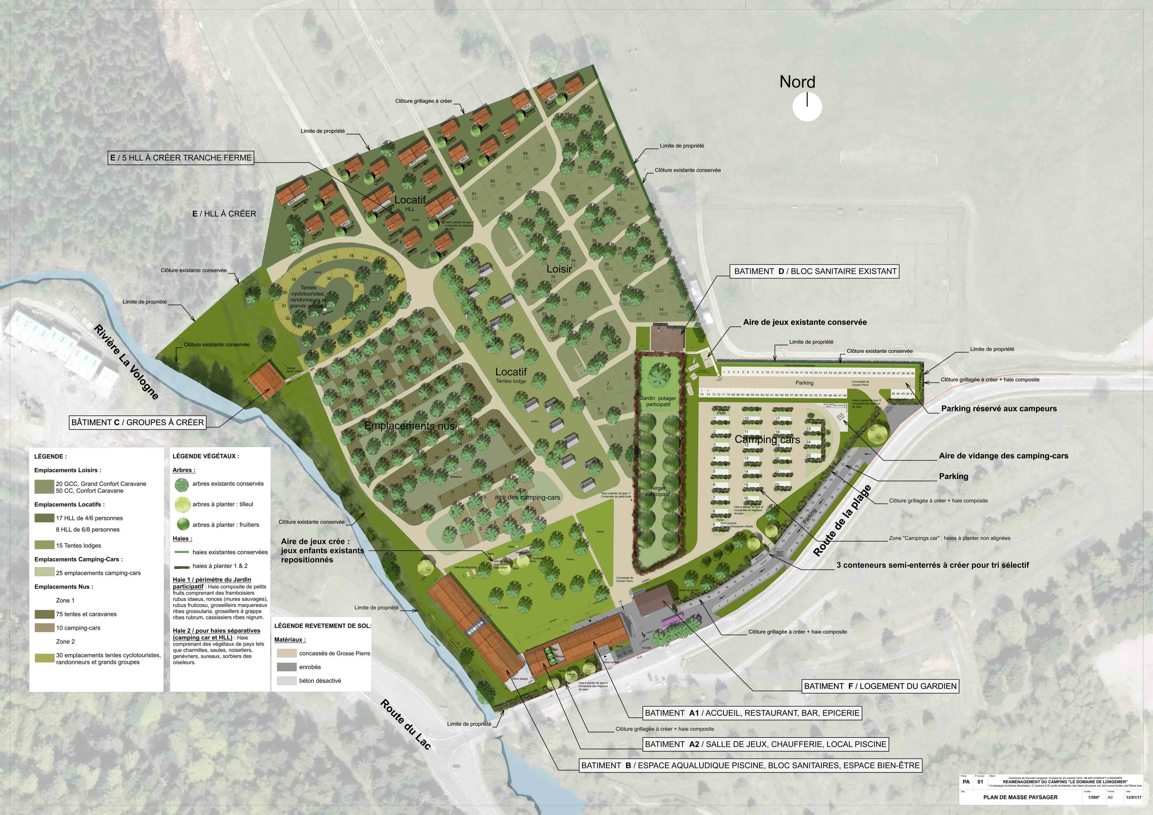 Le projet porte sur le réaménagement du camping municipal suivant le classement Label Clef Verte 4*. Il comporte la restructuration totale du site et la construction de bâtiments neufs et d'existants réaménagés. La conception des bâtiments a privilégié l’intégration d’une architecture sobre respectant le patrimoine traditionnel de la vallée des lacs, et adaptée au paysage naturel de montagne. Les bâtiments longères sont construits à partir de charpente bois traditionnelle en douglas, munis de coursives habillées de bois brut de production locale ayant le label bois sélection Vosges.