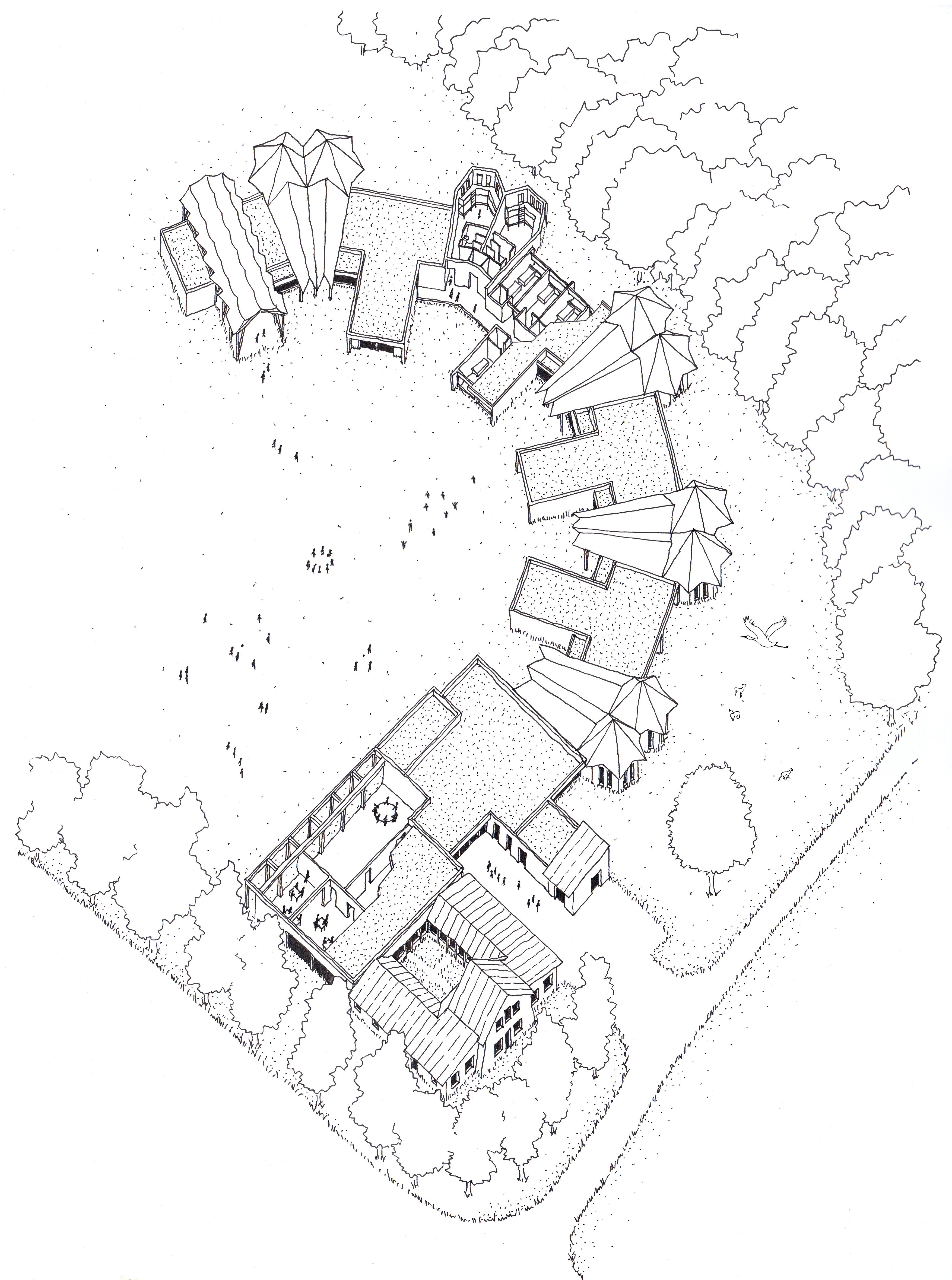 L'école Nicolas Hulot est un centre de sensibilisation et d'éducation à la biodiversité. Fondée en 2004, le bâtiment existant a fait l'objet d'une restructuration et d'une extension pour répondre à la demande croissante du public. Le projet comprend: - La création d'un nouveau pôle administratif construit en charpente bois autour d'un patio et raccordé au bâtiment existant. - La réorganisation de salles d'activités pédagogiques. - L'extension d'un hébergement passant de 80 à 150 lits. - La création d'une salle de pause. - La création d'un préau et d'un bloc sanitaire extérieur.