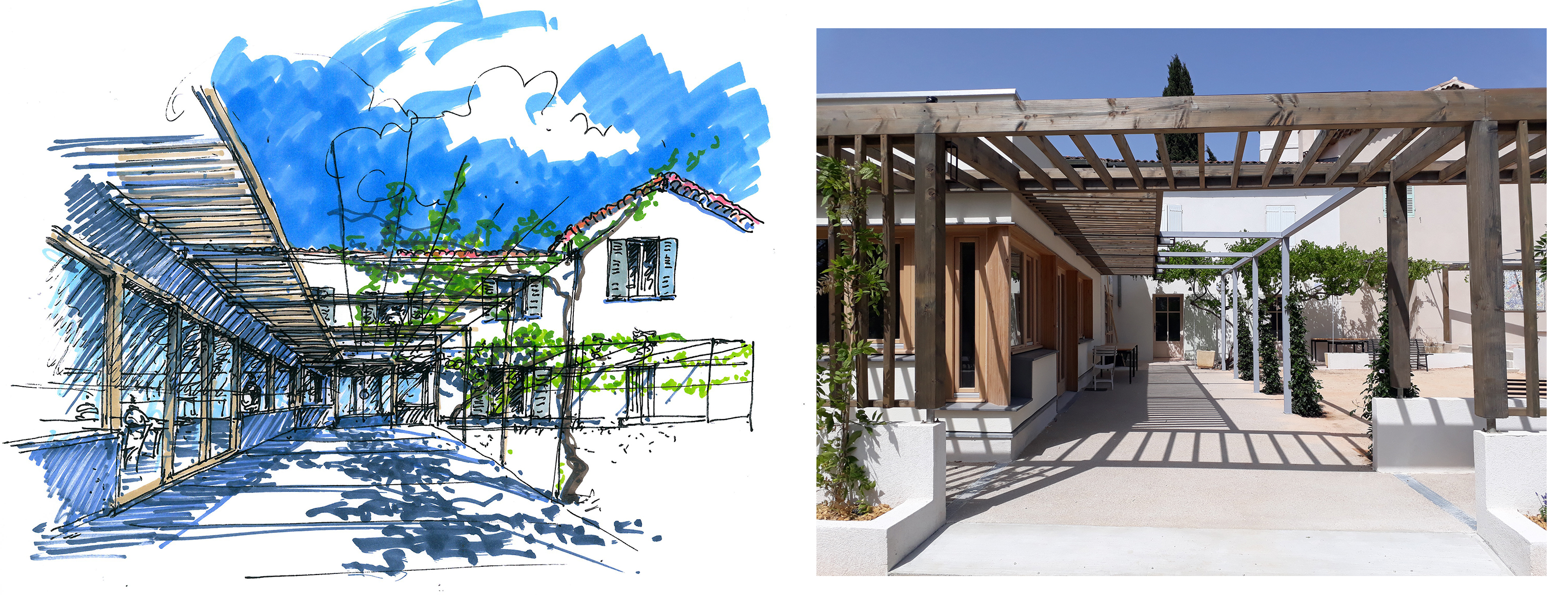Cette bastide léguée à l’Association Les Petits Frères des Pauvres est un lieu exceptionnel qui accueille des personnes âgées isolées et les bureaux du siège Provence. Les personnes y partagent repas et activités. Les architectes ont gagné le concours en proposant de faire évoluer la campagne Le Manier vers un bâtiment durable, c’est-à-dire vers un projet porteur de cohérence à tous les niveaux et pour tous ses habitants : confort, fonctionnalité, qualité architecturale / matériaux, performances énergétiques. Réhabilitation et réorganisation grâce à trois extensions en bois bioclimatique.