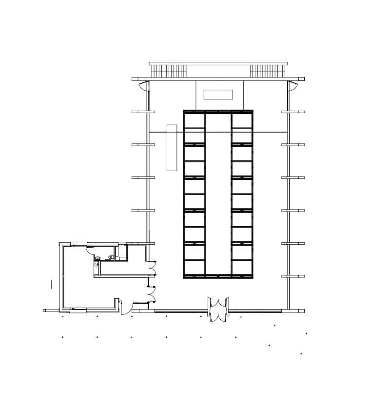 La transformation de l'église des fontaines d'Ugine en centre dédié à l'art contemporain est d'un point de vue architectural à d'abord une portée urbaine. L'ouverture de sa facade est une invitation, une manière de faire pénétrer la rue dans le bâtiment. La nef, est dédiée dans son ensemble à un espace d’exposition. A l’Ouest, la sacristie remplit désormais le rôle d’atelier, et abrite les espaces servant la grande halle. Entre les deux, un creux est ménagé et devient l’accès du centre. L’enjeu est de modifier le fonctionnement historique et religieux de l’église avec force et respect.