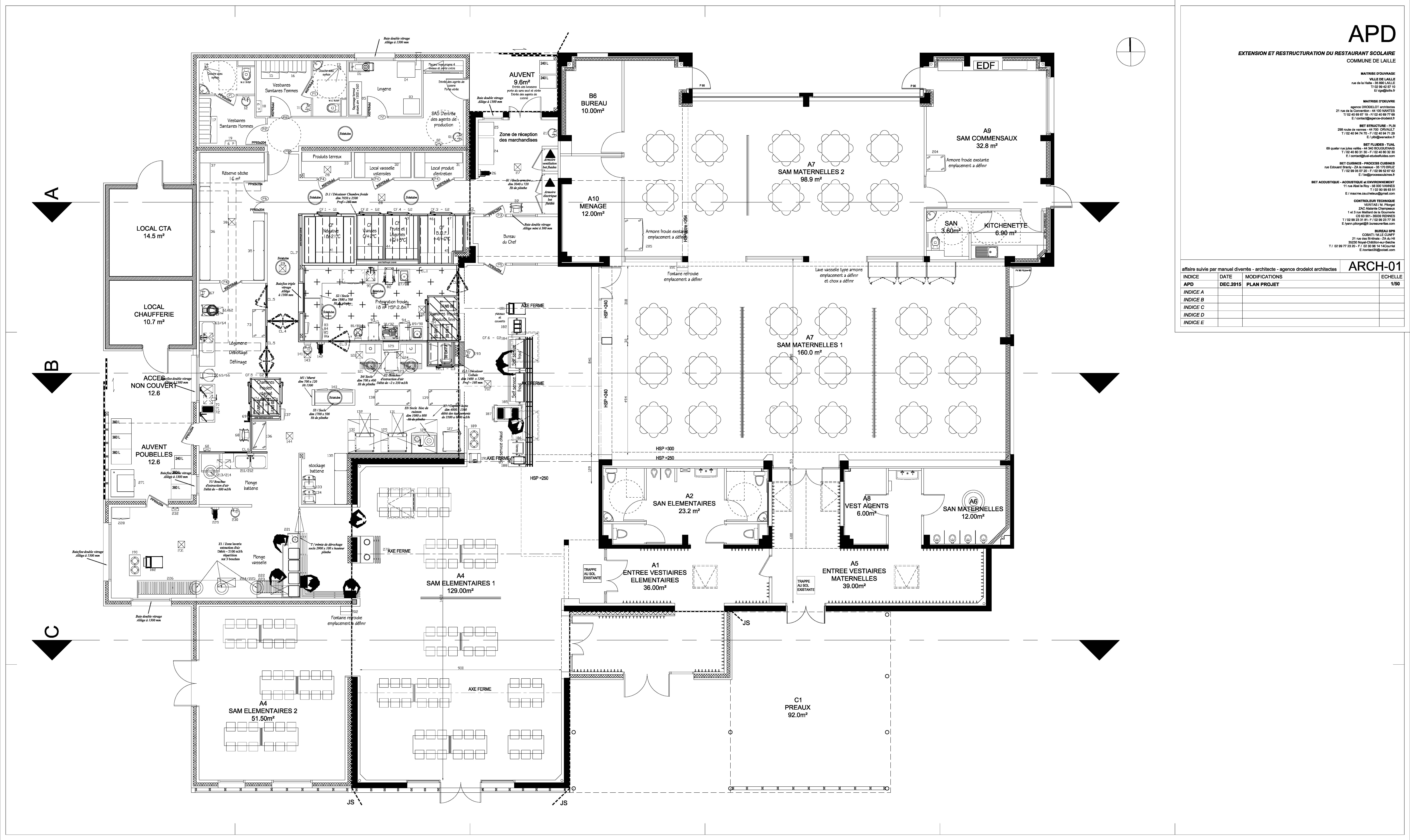 Au menu : construire de nouvelles cuisines, améliorer l’acoustique des salles à manger, accueillir les enfants, telle est la nouvelle carte du restaurant scolaire de LAILLE. Les bâtiments existants étant prévus conservés, le projet a été conçu pour s’harmoniser avec l’architecture existante et de façon à permettre un chantier par phase et en site occupé. Les nouvelles cuisines intègrent du matériel nouvelle génération, une ligne de self est créée pour les enfants, les salles à manger font l’objet d’un soins particulier pour l’acoustique.