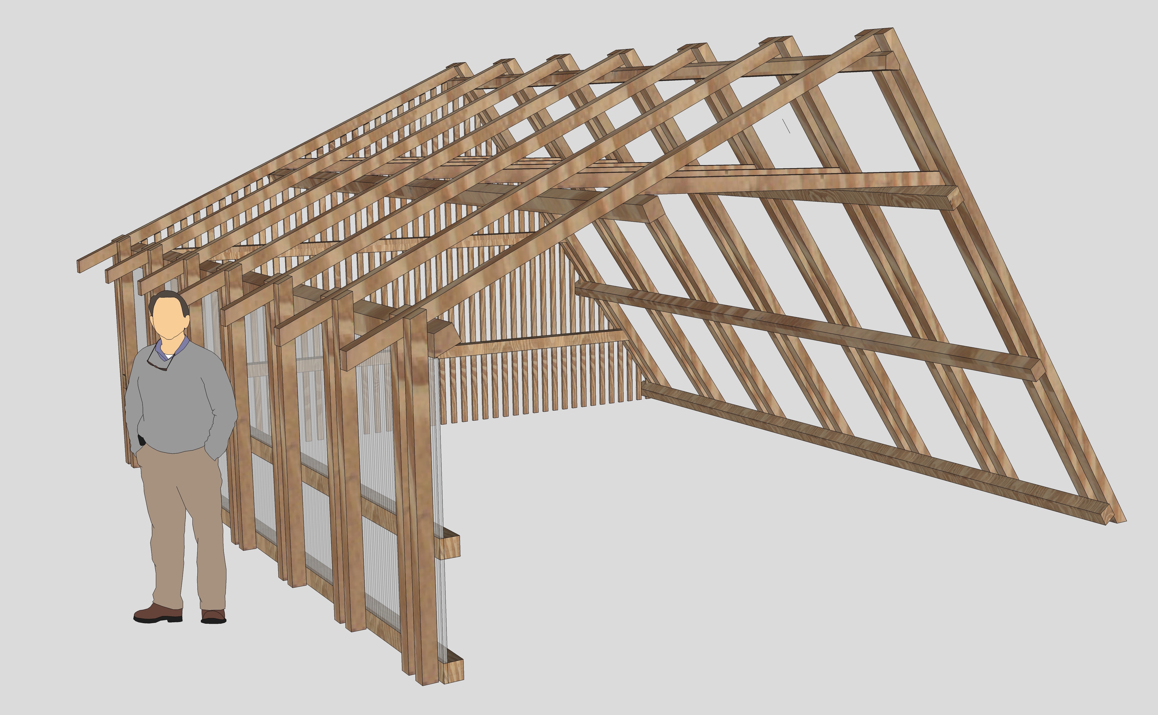 La structure est constituée de 8 portiques, en douglas de la région, avec une toiture à 2 pentes dont une descend jusqu'au sol en référence au maison "A-frame" américaine. Les parois sont couvertes de panneaux de polycarbonate et de panneaux de contreplaqué en pin maritime, eux-mêmes couvert de lames de Douglas. Elles ont été brûlées au chalumeau pour coupler esthétisme et préservation.