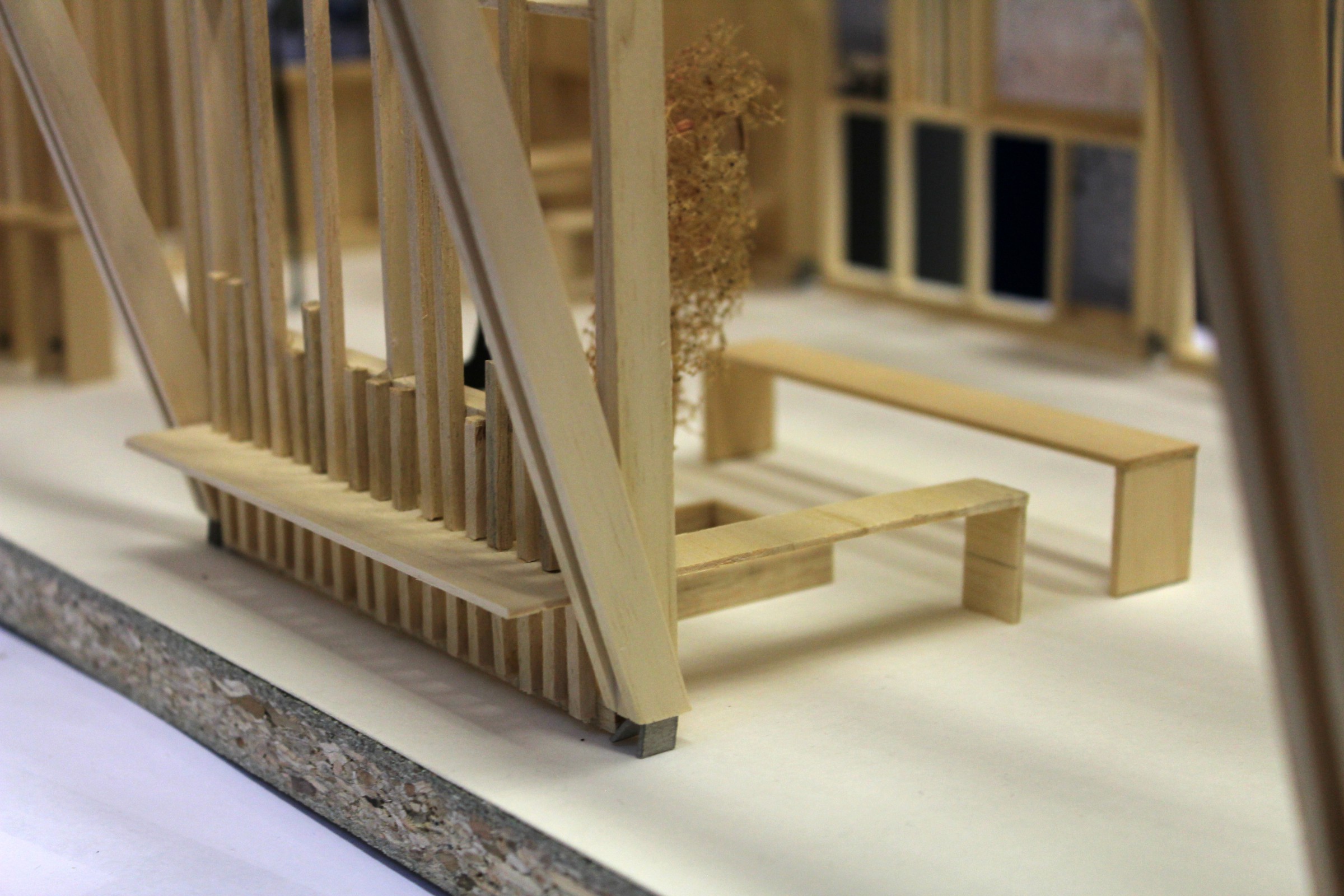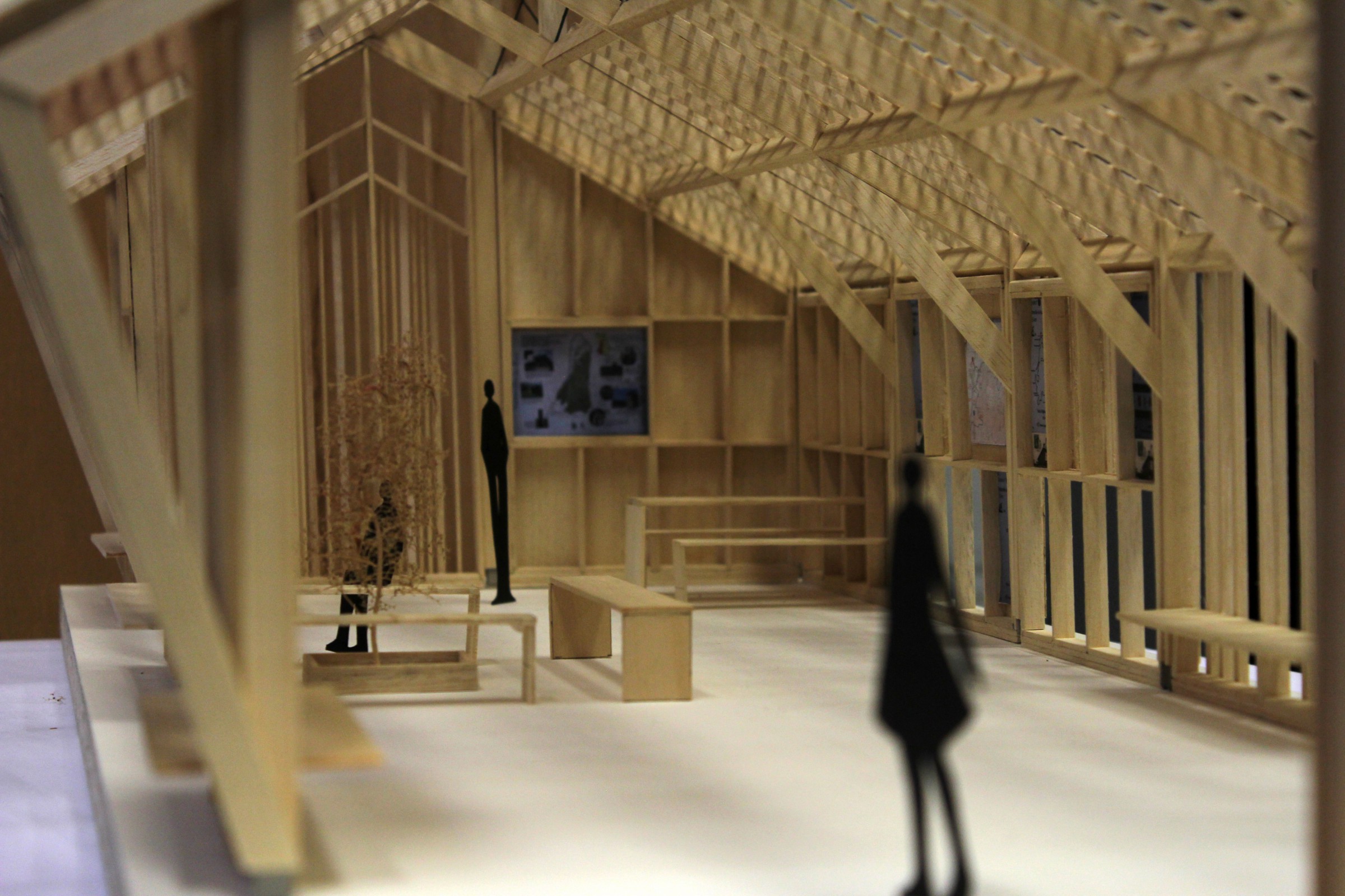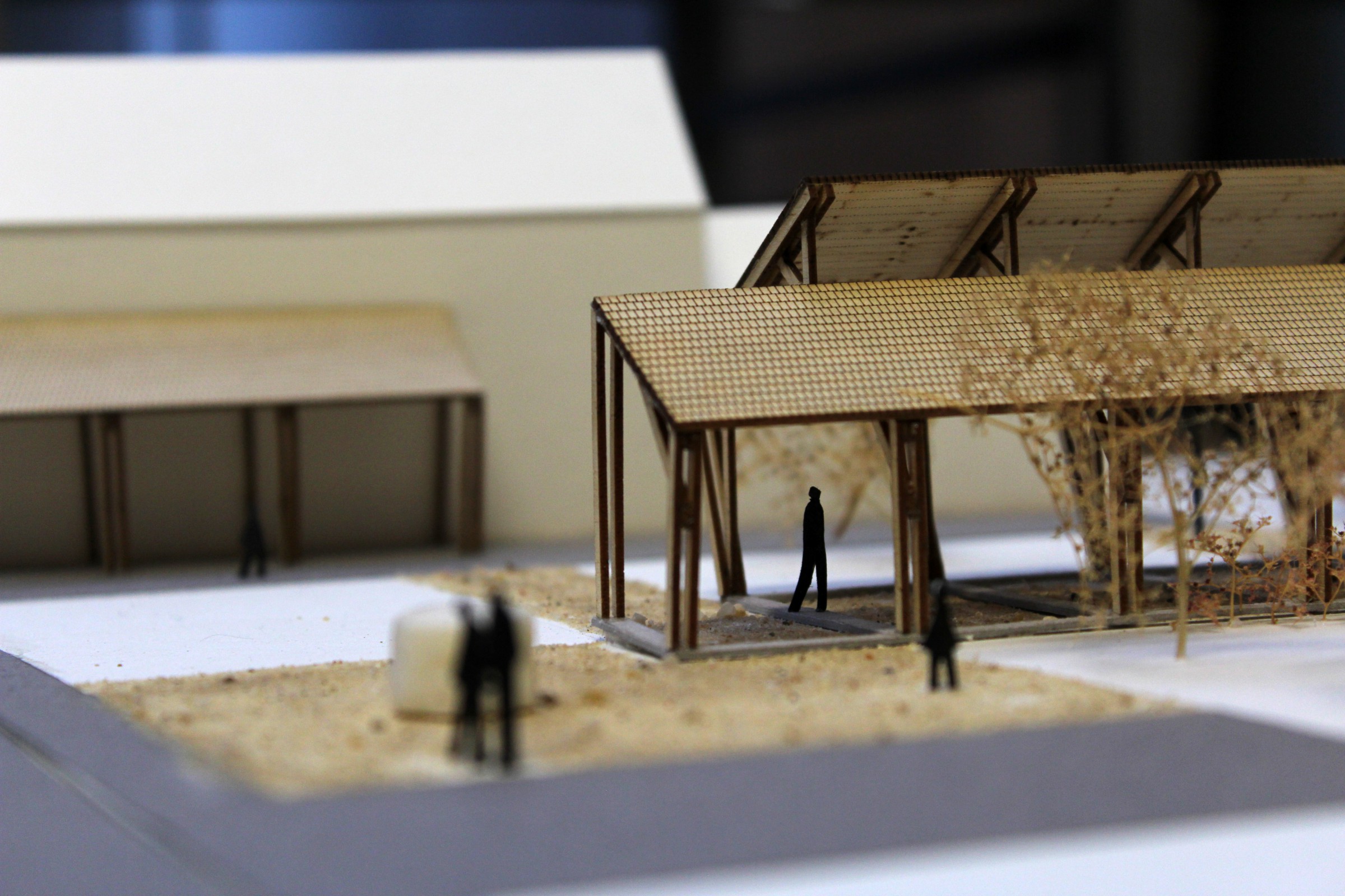 sculpter, sa trame dilater, un volume se détache, la halle entre en dialogue, elle crée un appel. Cet appel revalorise l'épicerie lui faisant face.