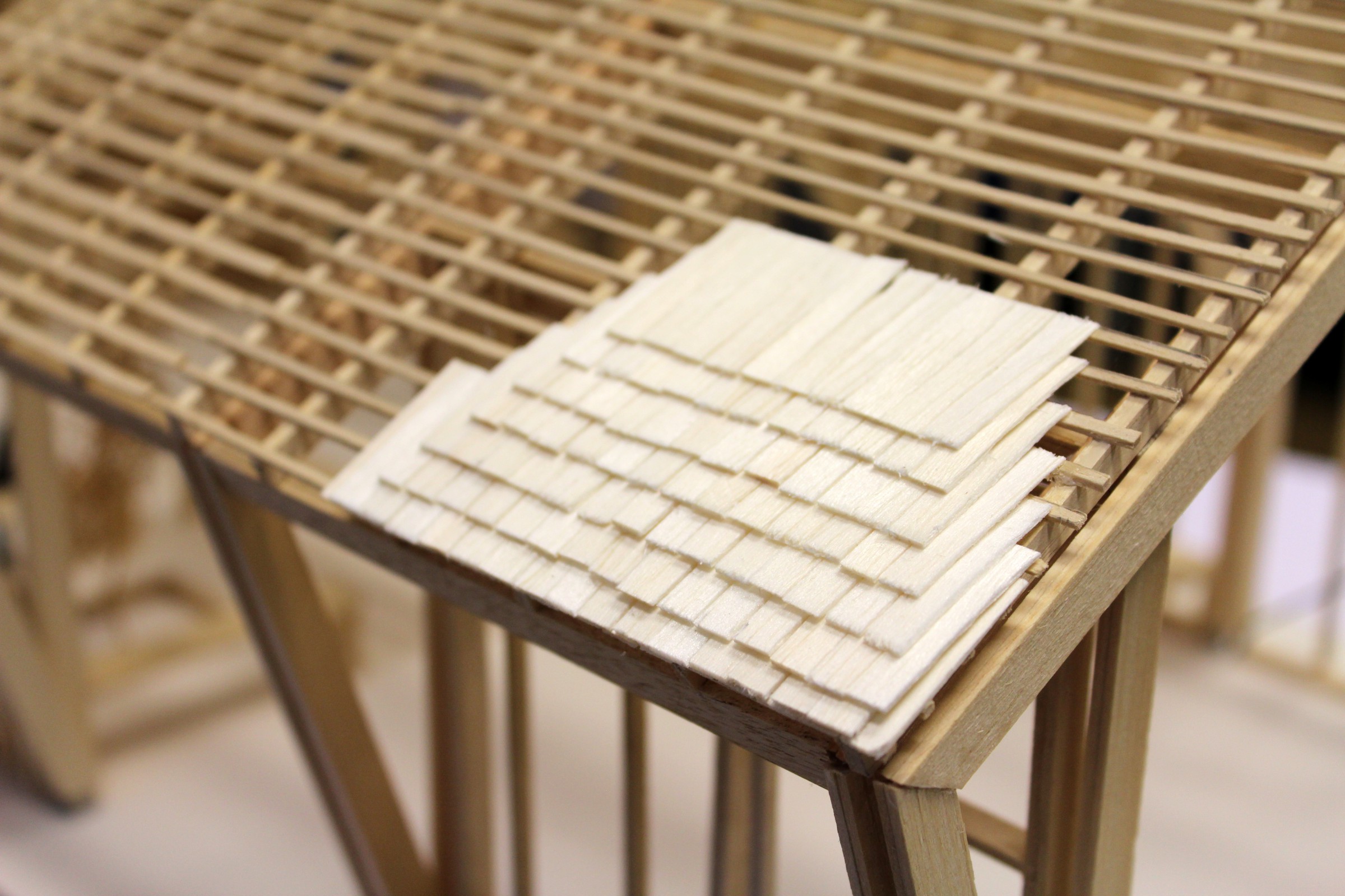 les bois sur le site de l'entreprise. Les bardeaux de châtaignier ont été réalisés de manière traditionnelle dans l'Orne. Aucun traitement n'a été