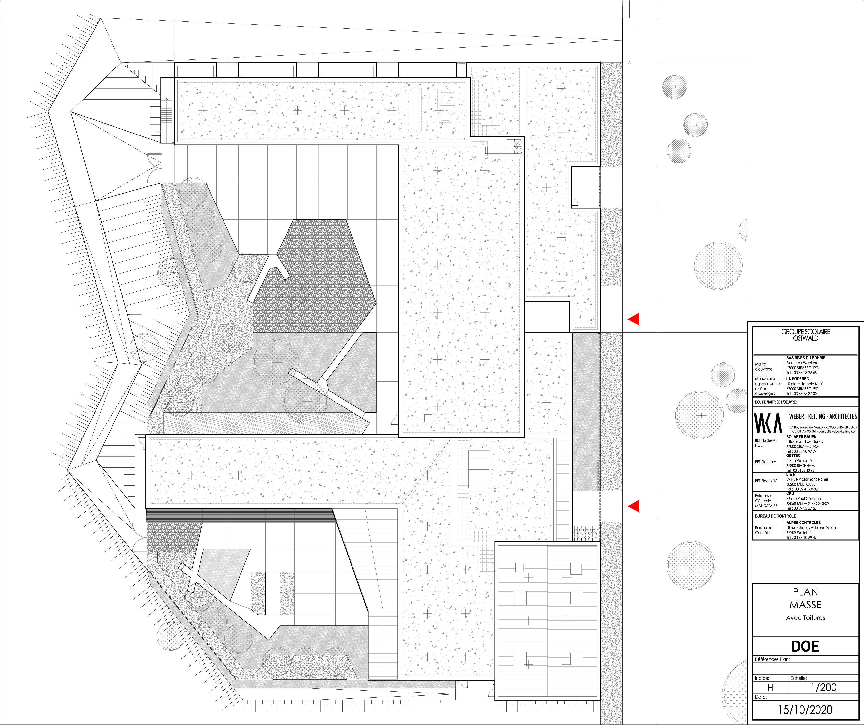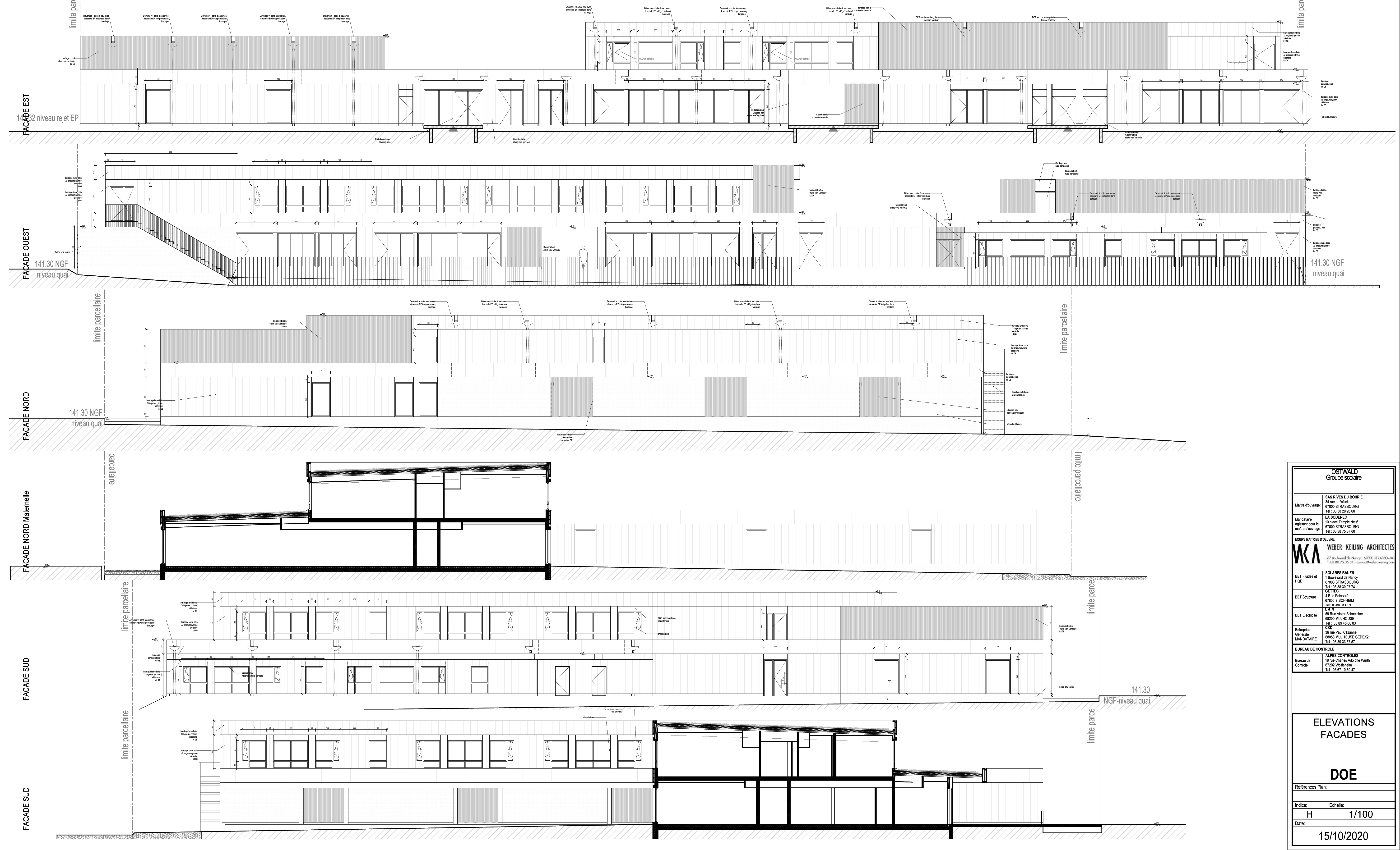 Le groupe scolaire des rives du Bohrie s'inscrit dans une ZAC en plein développement urbain et marque la transition entre la vaste prairie naturelle d'herbes hautes du site et l'espace public. Le parti architectural respecte et tient compte de ces contraintes urbaines et paysagères. L'ensemble forme deux équerres juxtaposées qui permettent d'ouvrir largement les cours de récréation vers le Sud et l'Ouest. L'organisation générale et le dispositif en équerre du bâtiment permettent à chaque école d'être en contact physique ou visuel avec les espaces verts de la prairie et la forêt du Kreuzlegert.