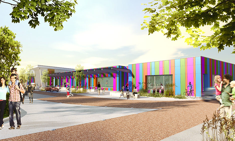 L’extension de l’école de Villars Les Dombes nous donne l’occasion de présenter un aménagement unificateur et fédérateur pour l’ensemble du site et d’intégrer la qualification de l’espace public au projet proposé. Le projet consiste à s’étendre en simple rez de chaussée au nord de l’école existante afin de rendre l’ensemble de l’établissement accessible sans ascenseur et escalier intérieur. Cette option permet d’éviter d’exposer un étage à la nuisance sonore de la voie ferrée dominante à l’ouest.