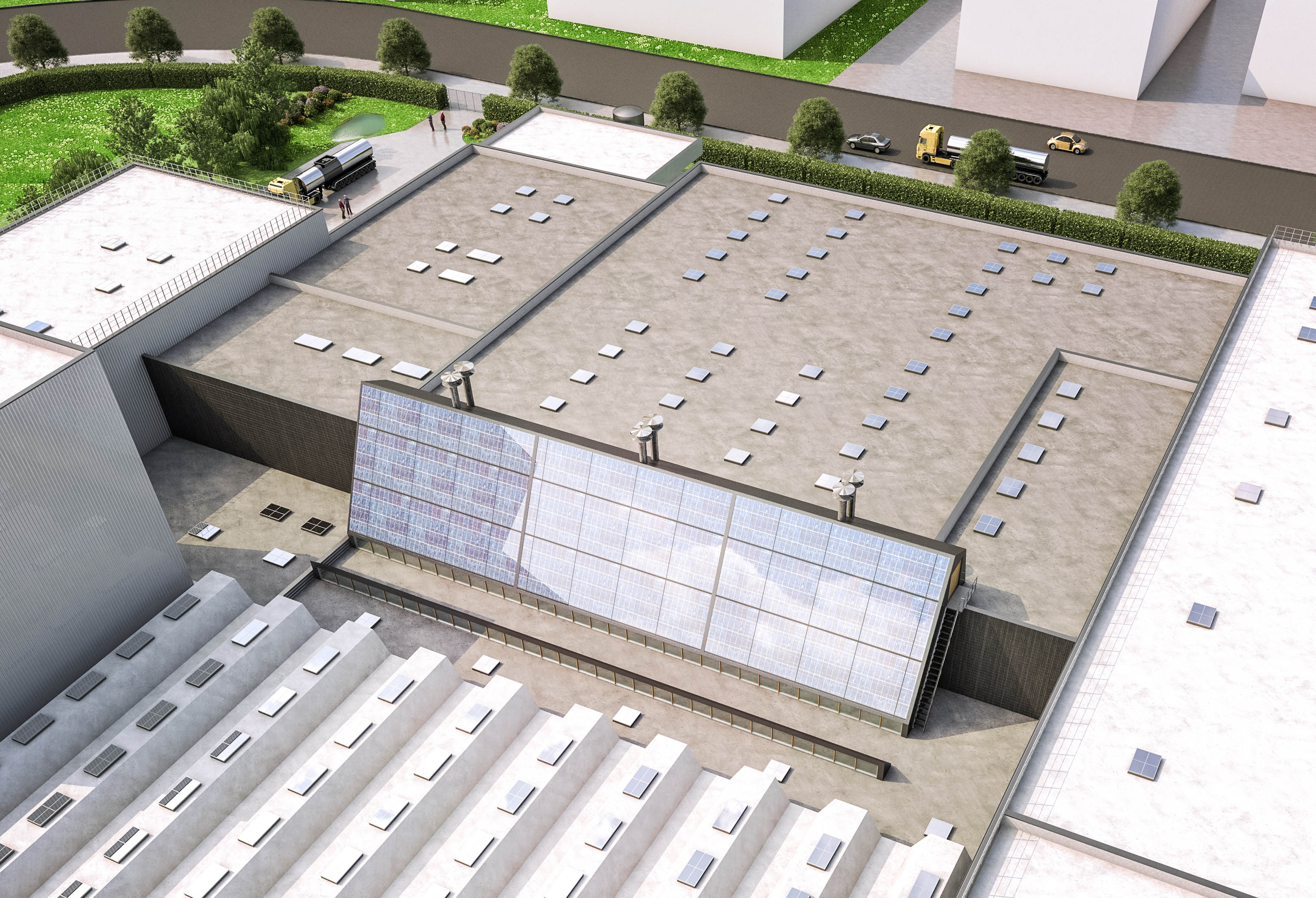 Approche environnementale : Les caissons modulaires bois/paille autoportants et préfabriqués ont permis une rapidité de mise hors d’air et hors d’eau des parois verticales. Ils sont habillés d'un bardage extérieur, en douglas de Haute Savoie, saturé. Les sheds en structure bois apportent lumière naturelle dans les labos. 36 sondes géothermiques verticales permettent d'exploiter les ressources naturelles du sous-sol, essentiellement en rafraîchissement. 216 m² de capteurs solaires aérovoltaïques, posés sur charpente bois, produisent électricité et air chaud récupéré par des échangeurs et réinjecté pour le chauffage.