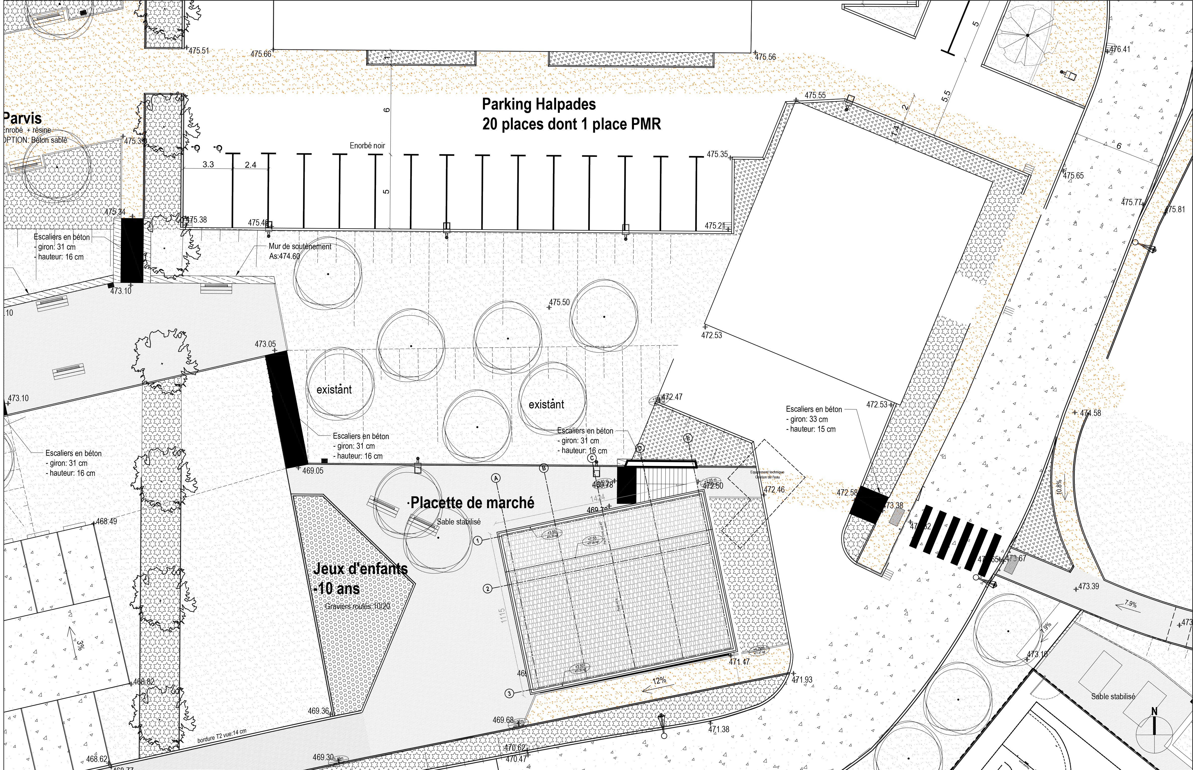 La construction de la Halle de Lancrans s'inscrit dans un projet global de restructuration du cœur de village. Le présent projet souhaite réinterpréter les construction de charpentes traditionnelles en jouant avec les pans de toitures et en proposant un dessin de charpente moisée.