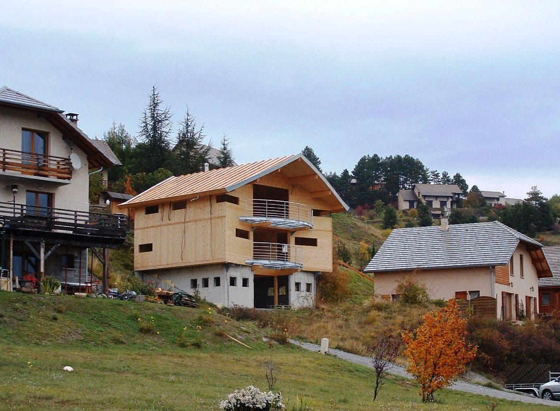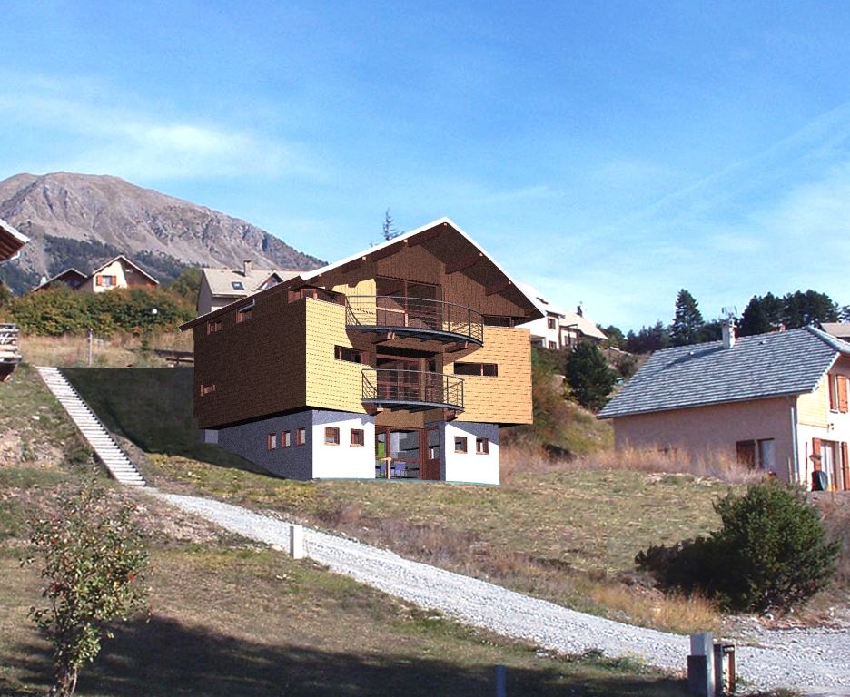 Démarche : savoir et choisir où "on met ses sous" pour habiter à 1100 m, bio climatisme été-hiver, haute isolation et basse énergie, enveloppe perspirante, habitat sain, et intégrer les pratiques vernaculaires de l’arc alpin : - optimisation du pignon Sud : dièdre, porche, loggia et avancée de toiture, pour se protéger des intempéries et du vent, favoriser les apports solaires hivernaux, s'en protéger l'été - coté nord enterré, combles tampon thermique. L’organisation locale urbaine, alignement Est-Ouest sur une courbe de niveau, reprend celle de hameaux du Queyras, et de chalets d’estive.