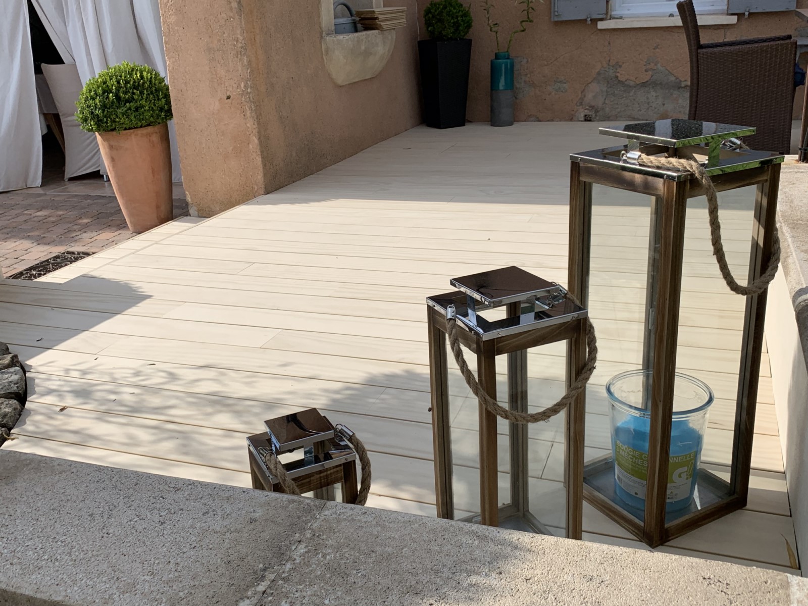 Visite en Provence et plus particulièrement au Coeur du Luberon où nous vous présentons la construction d'une terrasse en bois ACCOYA (84400 Gargas). Une réalisation sur-mesure que nous avons façonnée dans nos ateliers de confection en Luberon ( 84400 APT) : délignage, rabotage, profil d'assemblage et ponçage pour une parfaite finition du produit. Par sa grande stabilité et pérennité, ainsi que ses qualités environnementales, le bois ACCOYA est au coeur de nos projets architecturaux en constructions bois haut de gamme et maisons d'architecte que nous bâtissons en Provence.