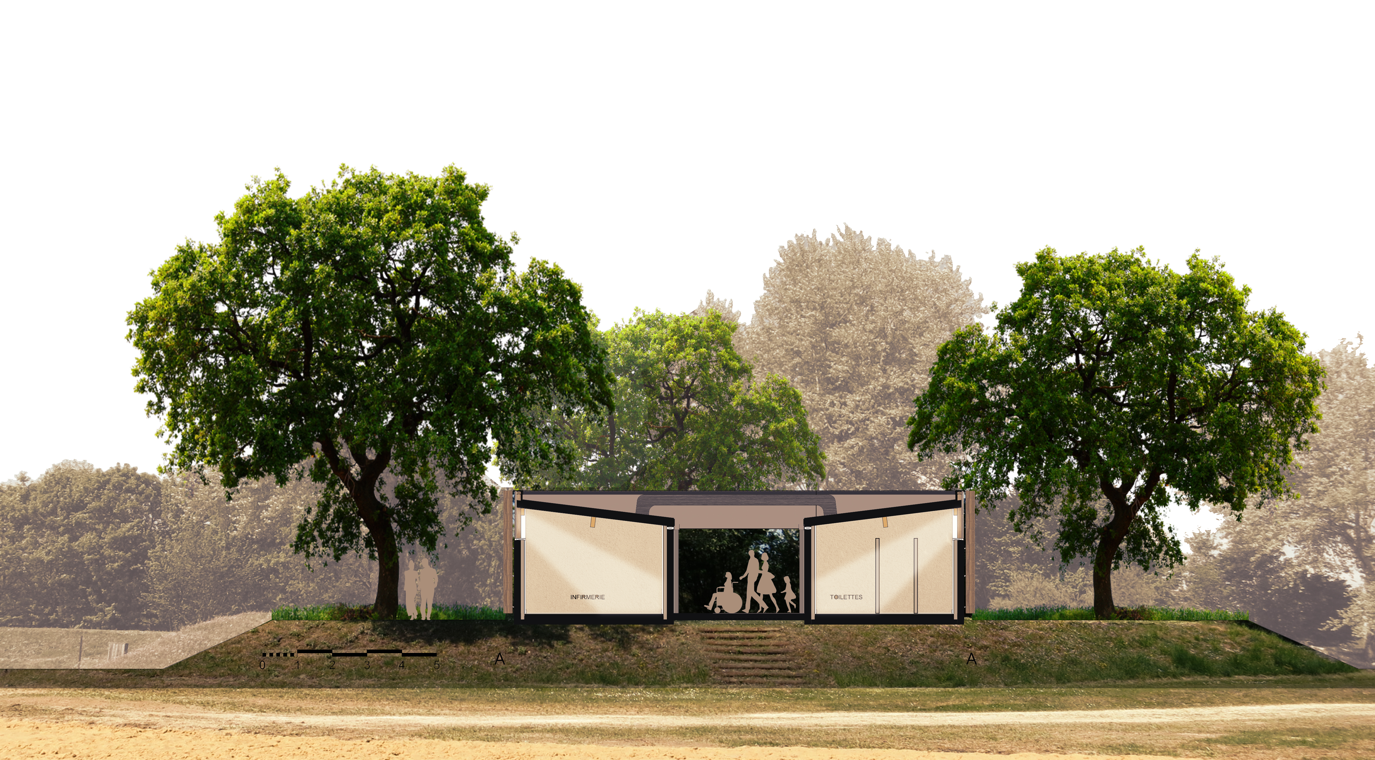 Approche environnementale : Le projet renvoie à l'installation première sur un site naturel : et même si l'emplacement souhaité est déjà défini, notre équipe n'aurait pas proposé d'autre lieu pour implanter ces activités.