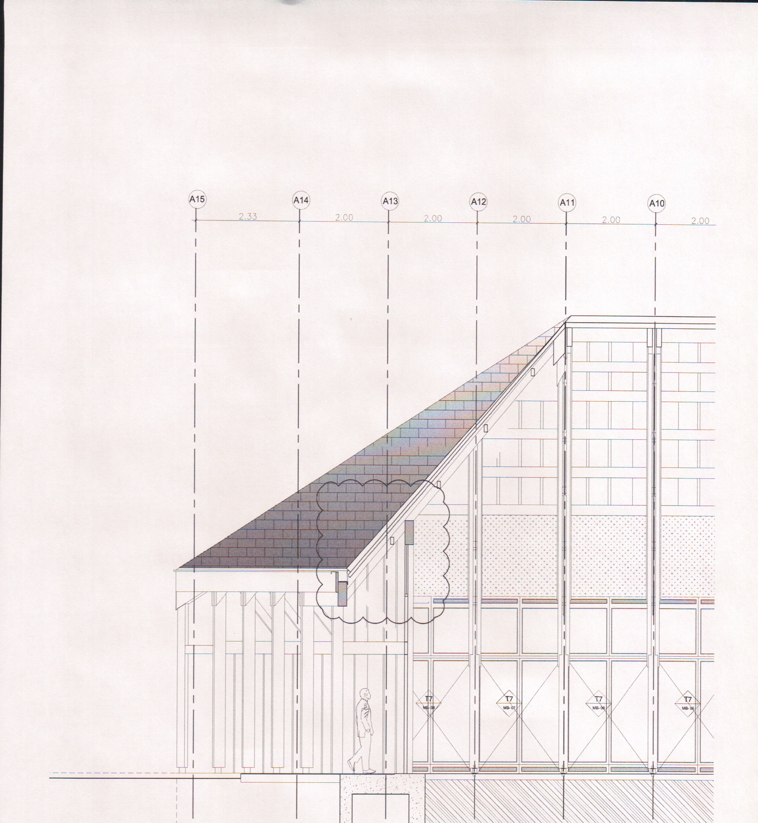 La halle de marché polyvalente représente un nouveau repère dans la ville. Le bâtiment est aussi prévu pour accueillir une salle de spectacle et peut devenir un parking. La forme géométrique, couverte d'une toiture à quatre pans, délaisse toute sorte de complexité pour mettre en lumière les bâtis alentours. Le débord de toiture crée un passage couvert, bordé par une double colonnade. Les trois façades actives et ouvertes sur la ville, offrent ainsi une grande perméabilité de part et d'autre du site. La structure de la halle libère totalement l'espace et de permet une grande modularité.