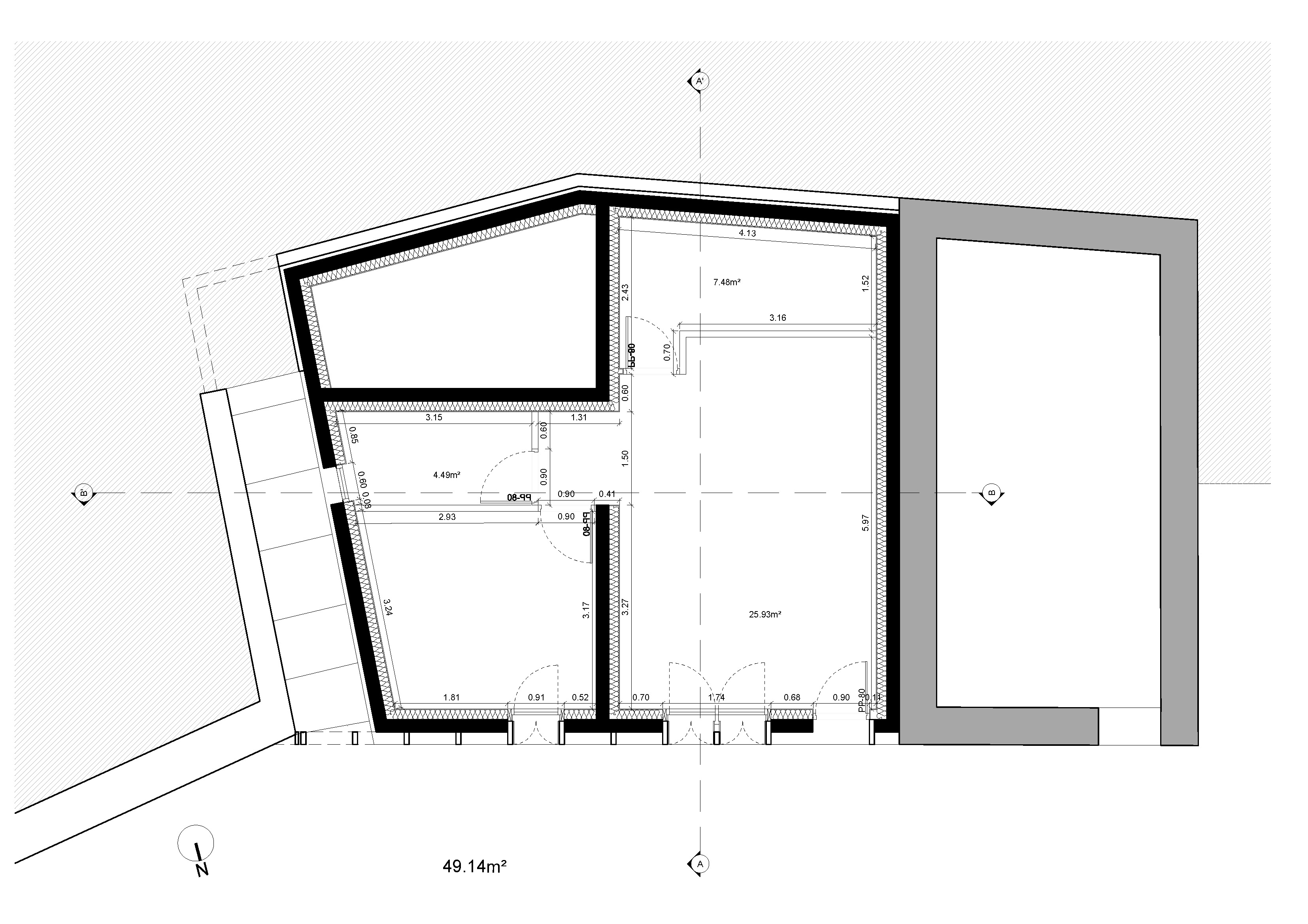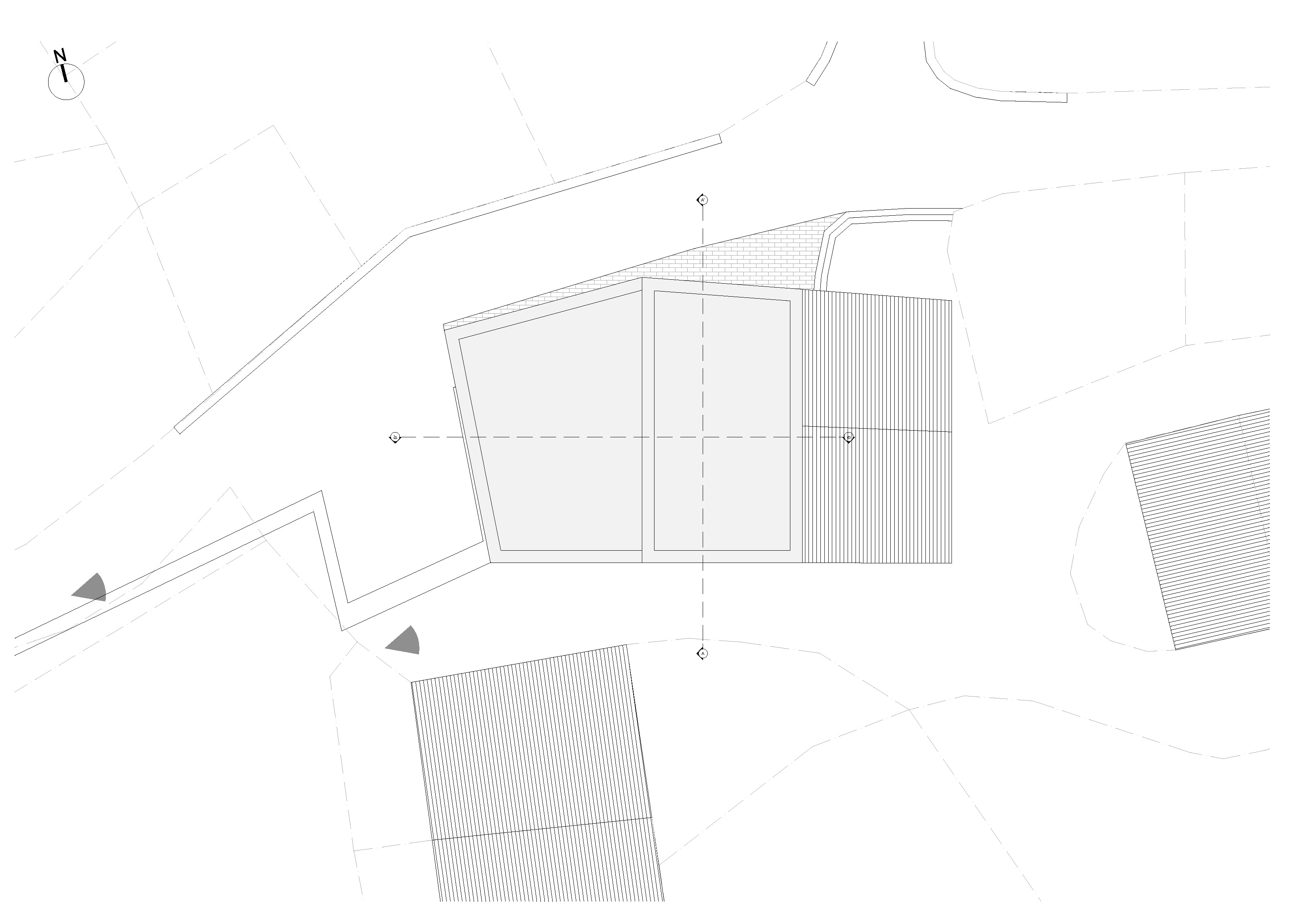 Cristinacce est un village granitique. Son architecture se dessine par des bâtiments massifs s’érigeant au travers d’une très grande simplicité volumétrique immergés dans un paysage naturel. Inscrit dans cette architecture minérale et monolithique, le bâtiment en bois leur emprunte cette vérité architecturale et constructive exprimant la structure, les forces et descentes des charges. De la même manière où l’architecture vernaculaire en pierre nous permet de lire les chaînages d’angles, les linteaux, les encadrements de baies, la structure bois y est rendu visible en façade.