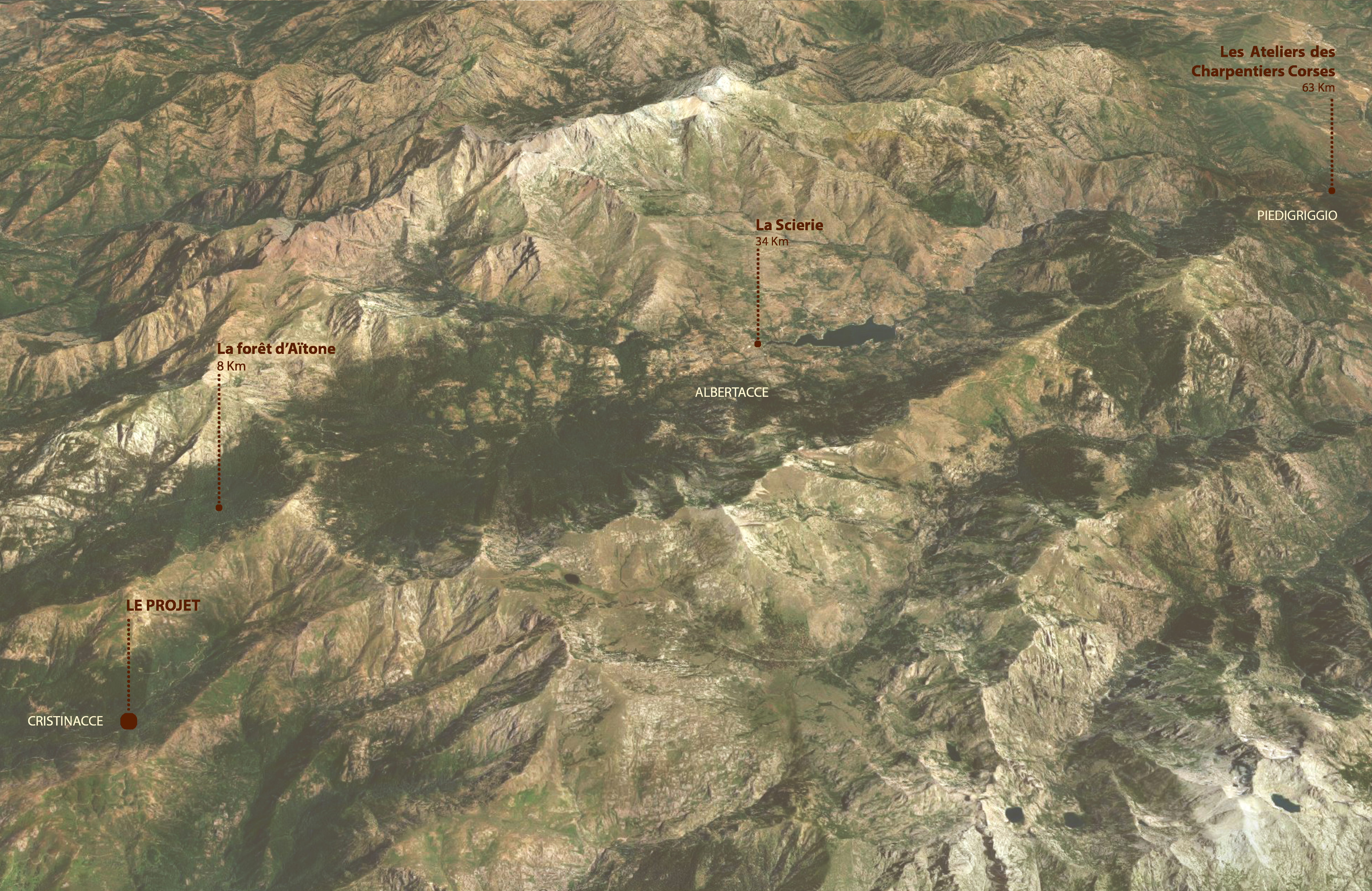 Approche environnementale : Dans le but de proposer un projet exemplaire dans la prise en compte des problématiques environnementales et grâce aux solutions mises en place par la maitrise d’œuvre, le projet se veut entièrement constitué d’une structure en pin Laricio et mis en œuvre sur place. Il vise aussi à faire la démonstration de l’importance de l’emploi des matériaux et savoir-faire locaux afin de limiter les dépenses en énergies grises liées à la construction du bâtiment.