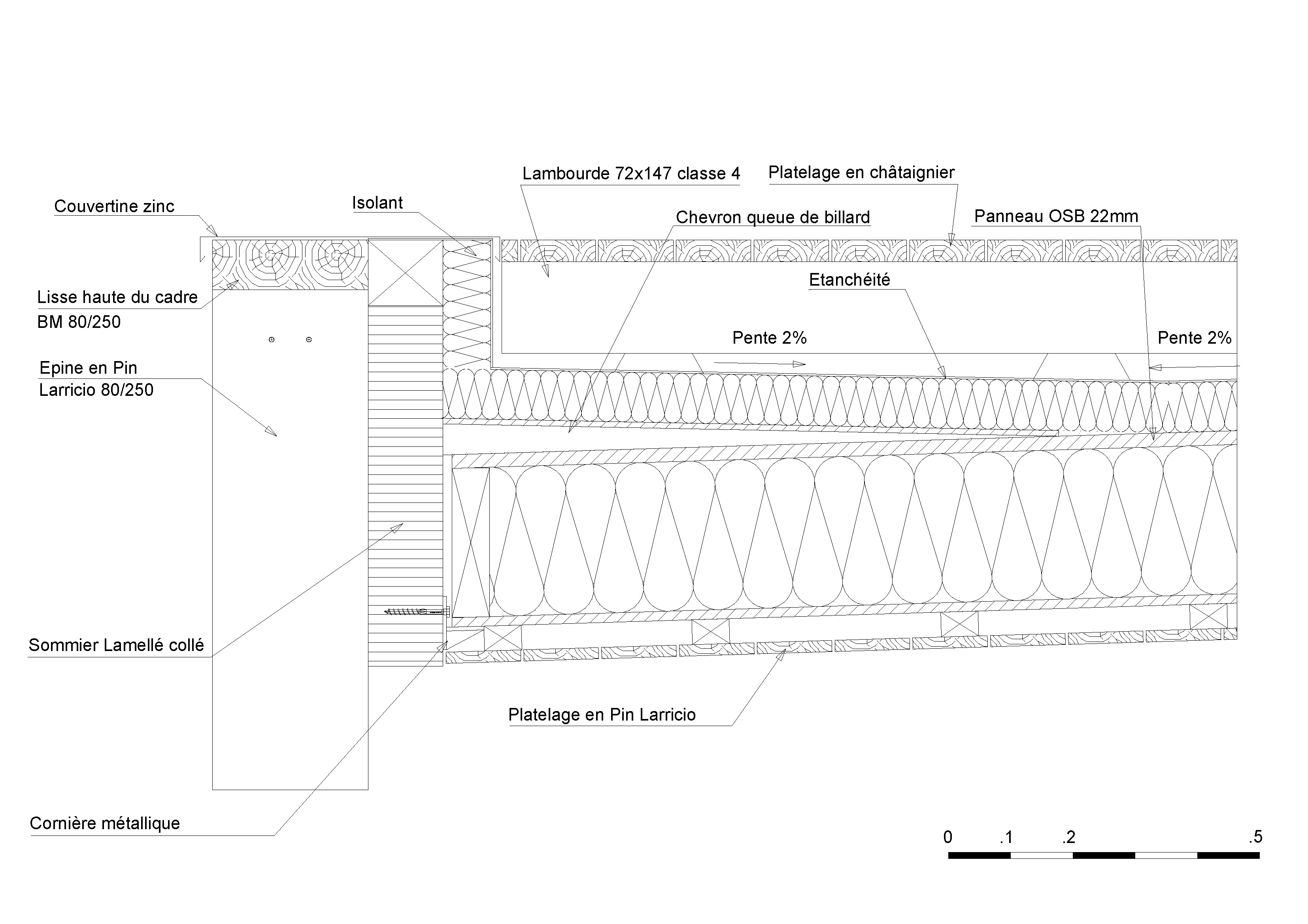 | Charpente traditionnelle | Pin laricio | France | Traitement Classe 3a (trempage) |