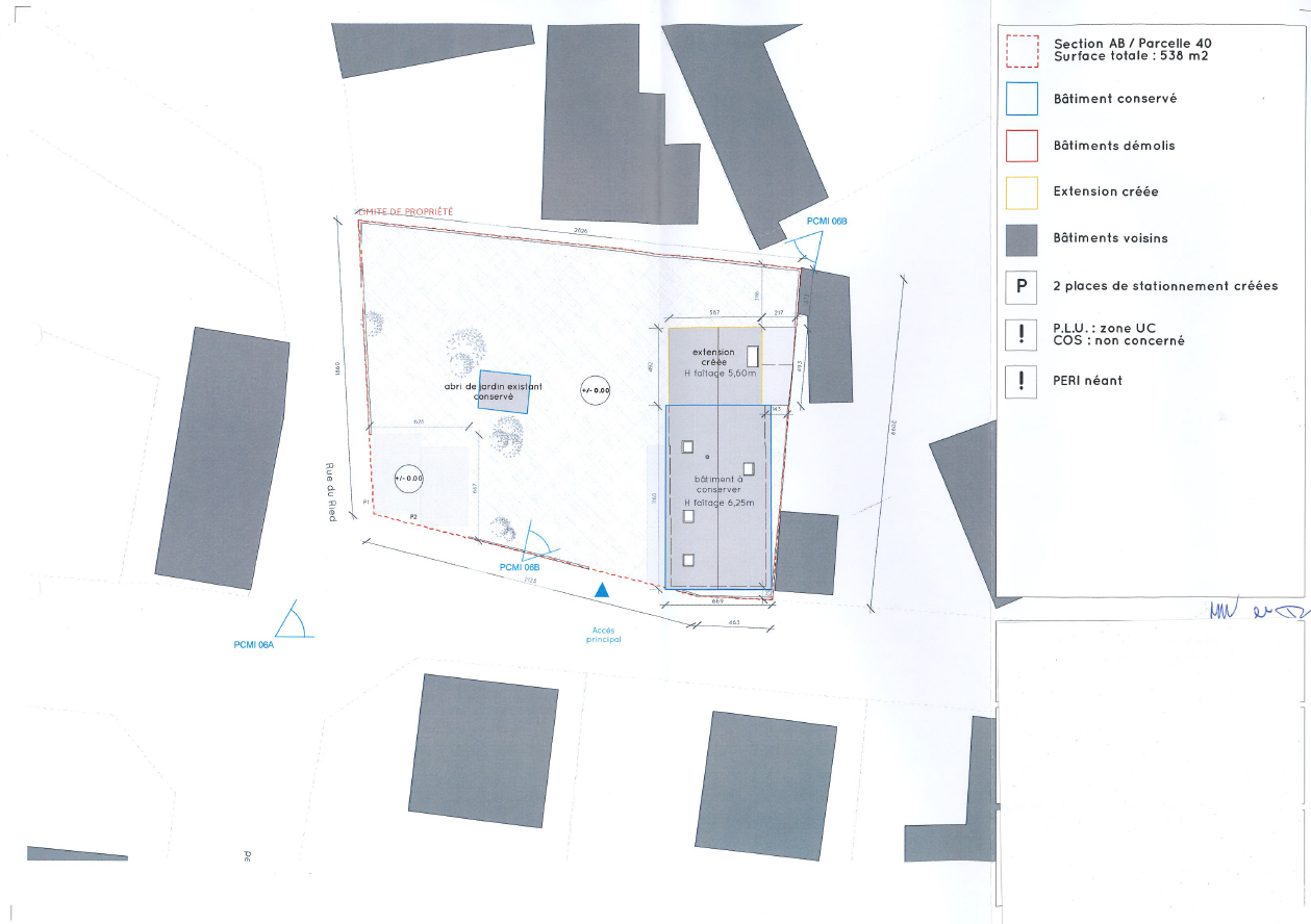 Approche environnementale : Une réflexion globale sur l’espace existant a été menée. Les espaces intérieurs existants ont été redistribués selon des critères d’orientation, d’ensoleillement et de points de vues. Une extension a été créée, qui intègre le séjour et le salon, largement ouverts et vitrés vers le jardin. L'extension a été réalisée en ossature bois avec une isolation naturelle et respirante en laine de bois, et un bardage bois extérieur en bardeaux de bois.