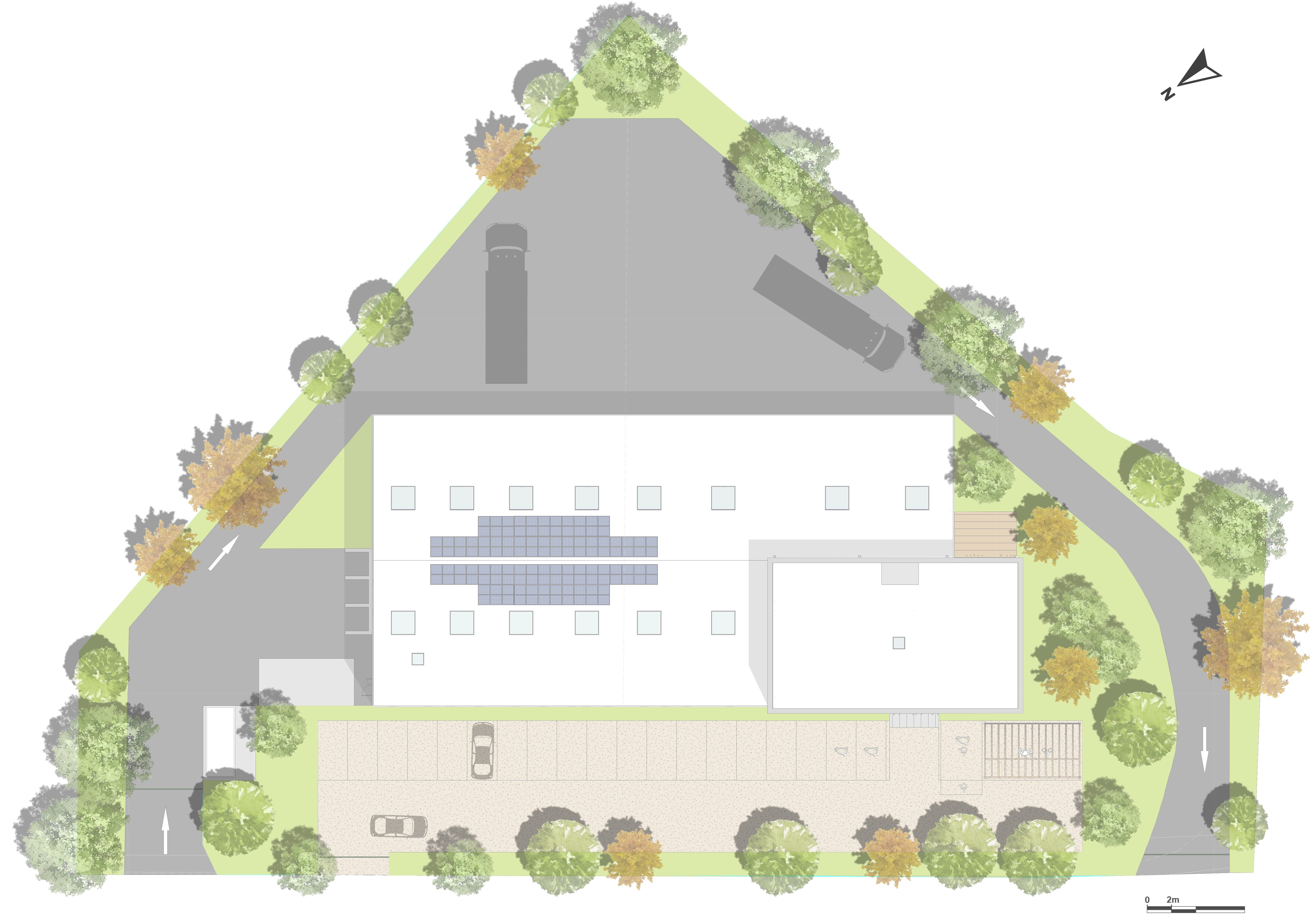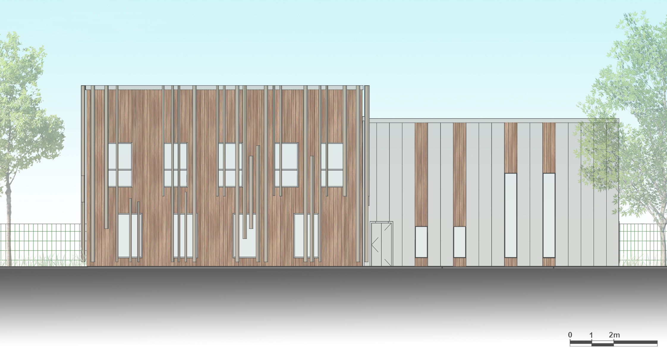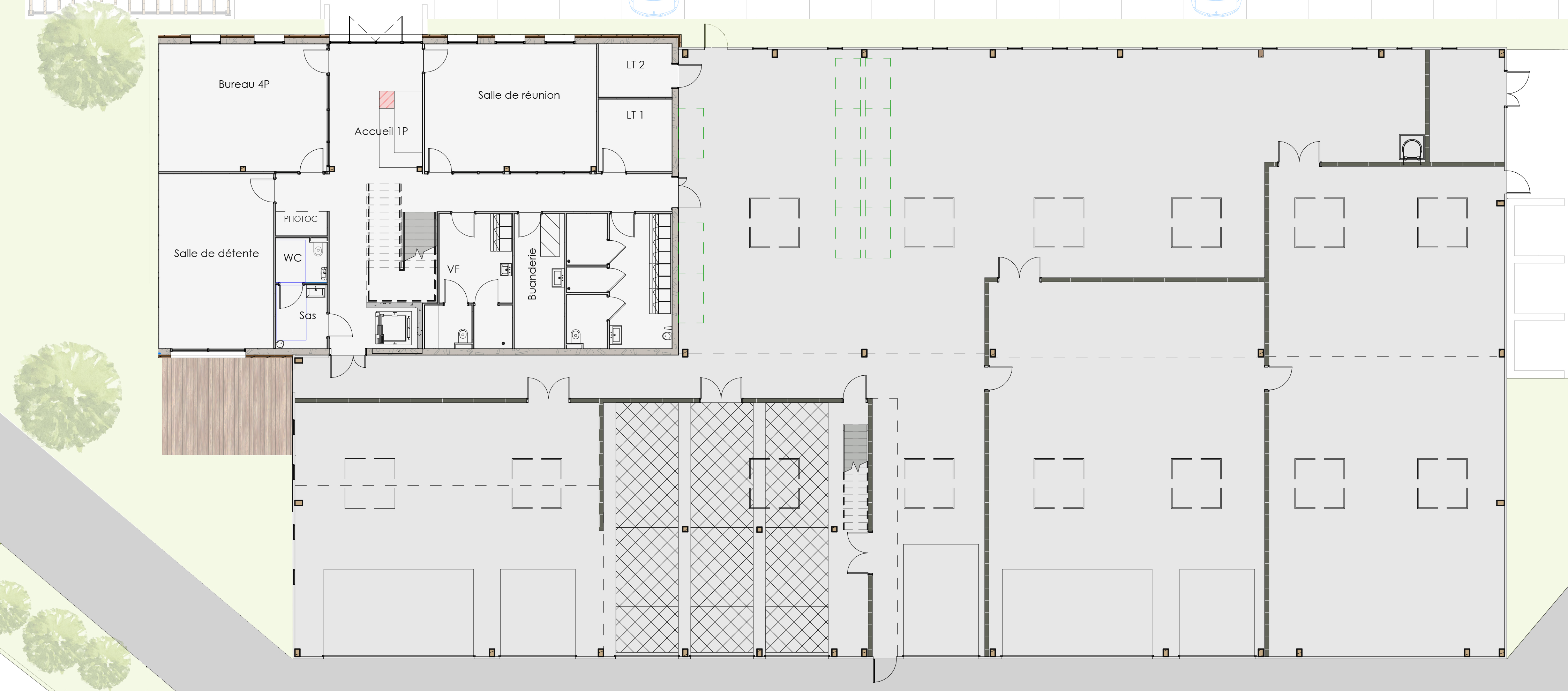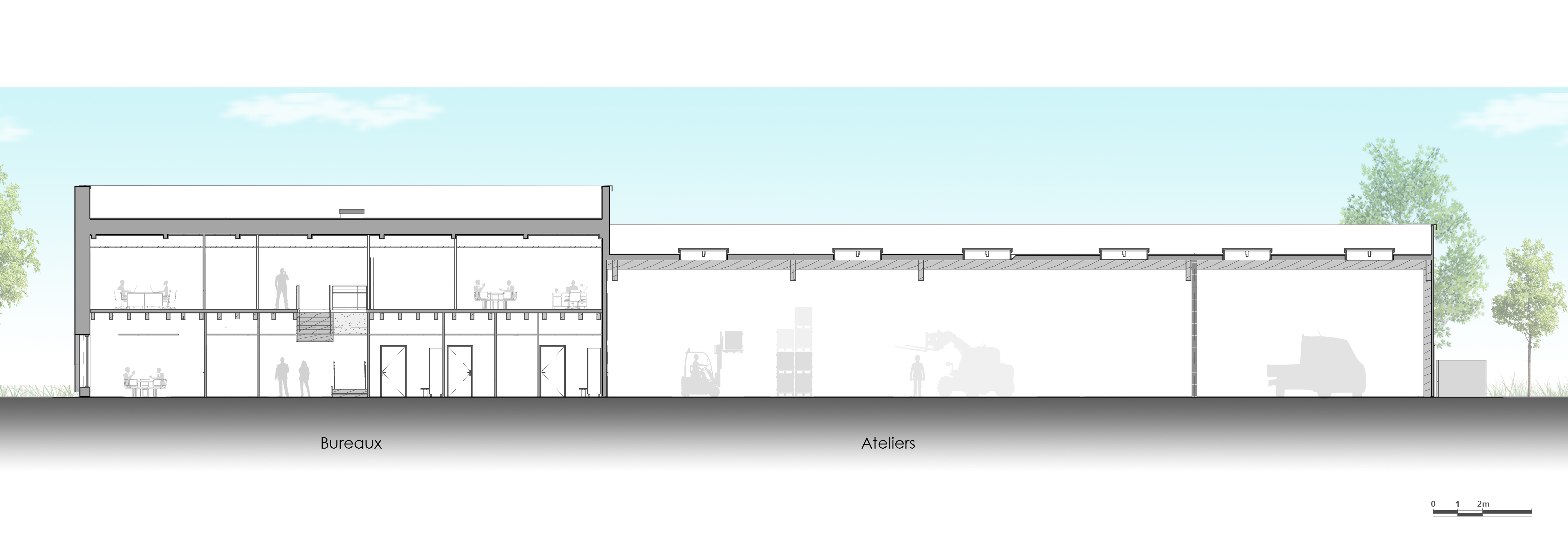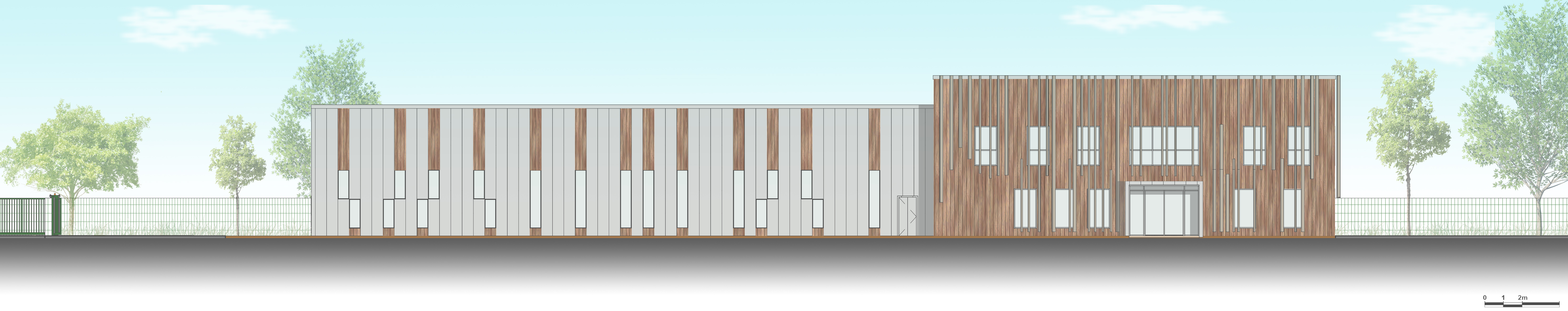 Le projet consiste en la réalisation d’un bâtiment pour les services techniques de la Communauté de commune de Grand Lieu. Le programme comprend des bureaux et locaux sociaux dont un accès ERP et une partie ateliers et stockages. L’orientation du bâtiment a été pensée de manière à optimiser les apports solaires tout en s’en protégeant par des lames de bois disposées devant les menuiseries et animant la façade.