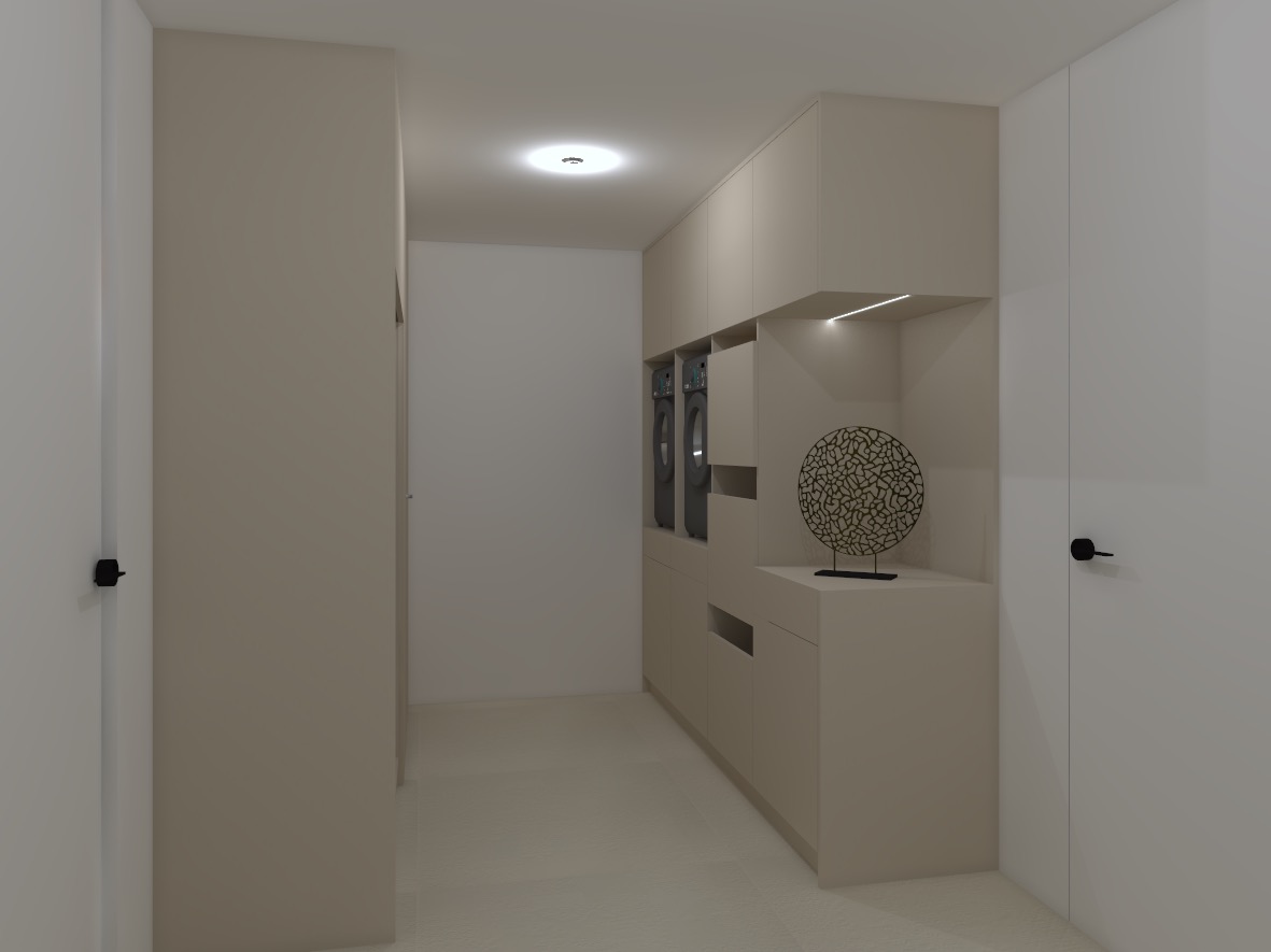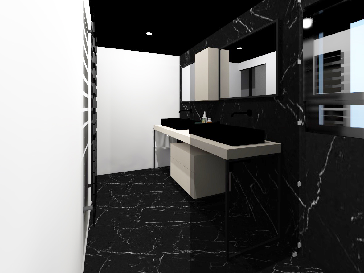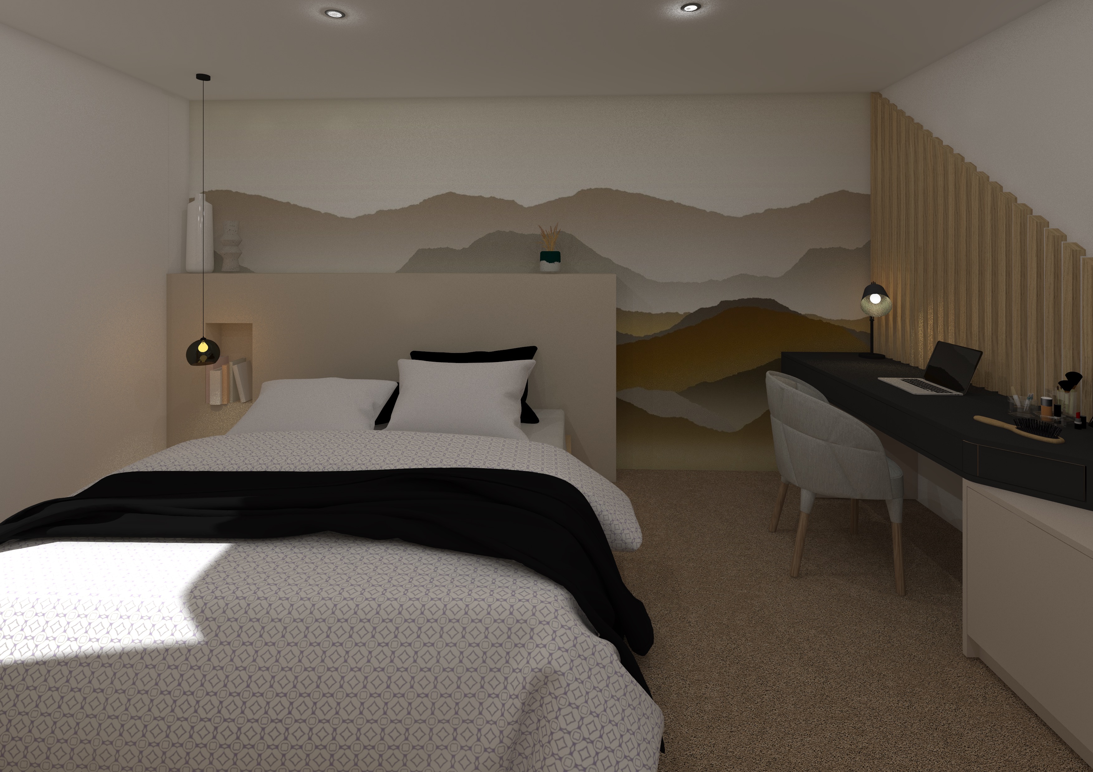 Descriptif technique de l'aménagement : Sur ce projet, nous avons poussé la personnalisation à son summum avant de nous recentrer sur l’essentiel : l’optimisation des espaces et l'élégance au travers de la simplicité et du choix des coloris et matériaux. D'un point de vue technique, l'enjeu principal se situait dans cette monumentale tête de lit, également habillage mural, intégrant une porte dérobée ainsi que de l'éclairage pour souligner les différences de profondeur et volumes du projet. Nous avons aussi réalisé toutes les portes affleurantes toute hauteur du chantier, autre point très technique dans notre profession.