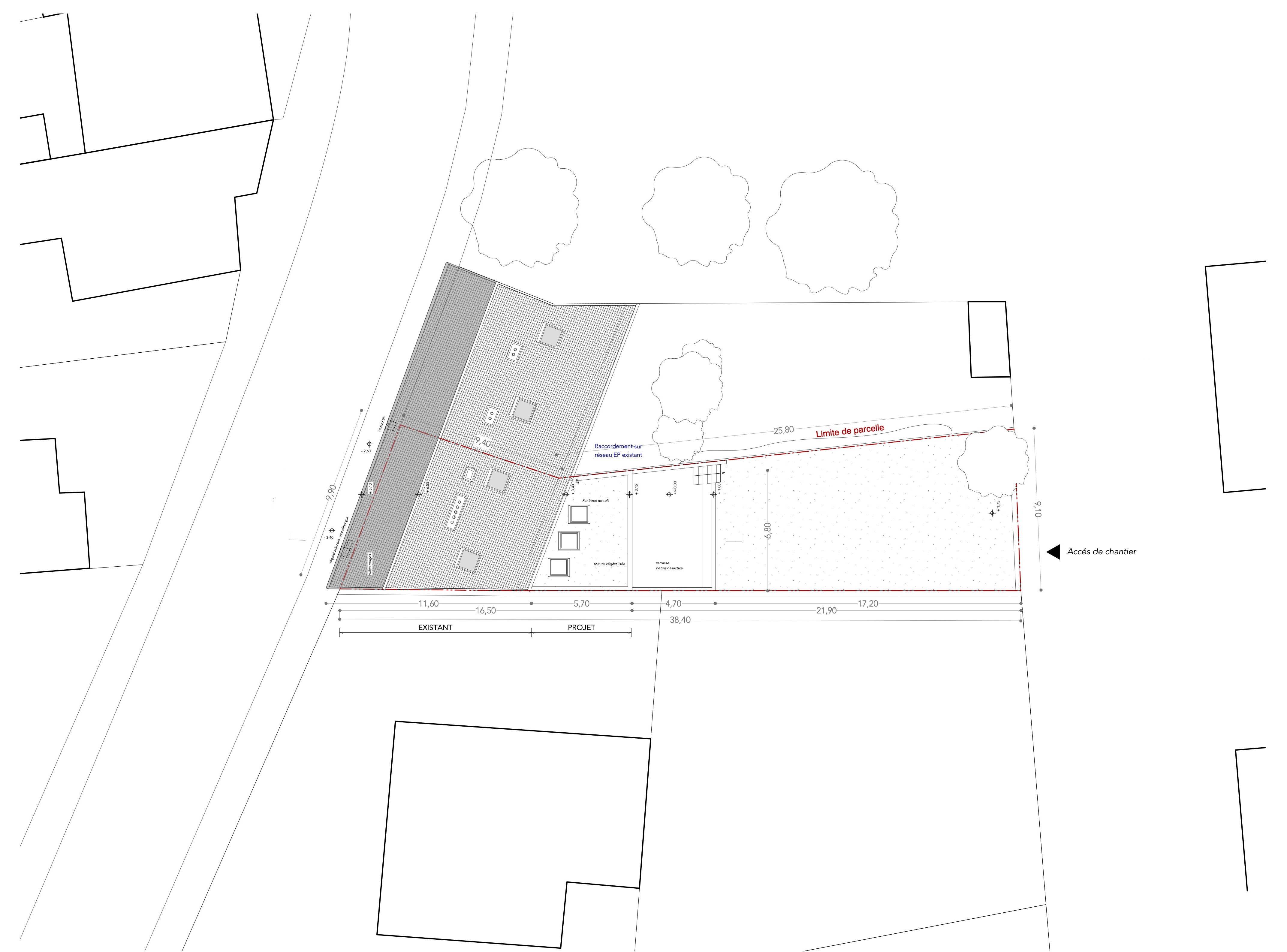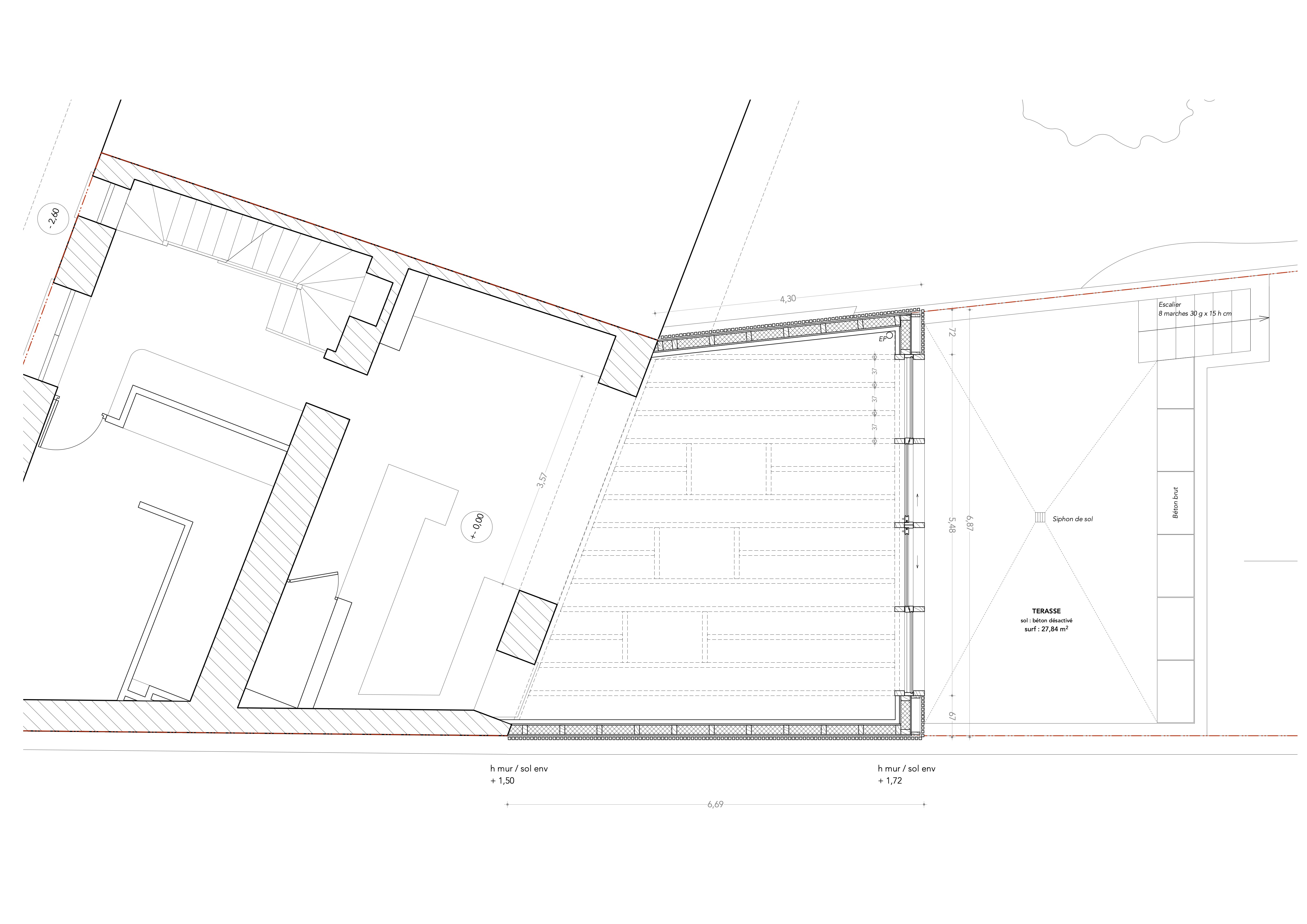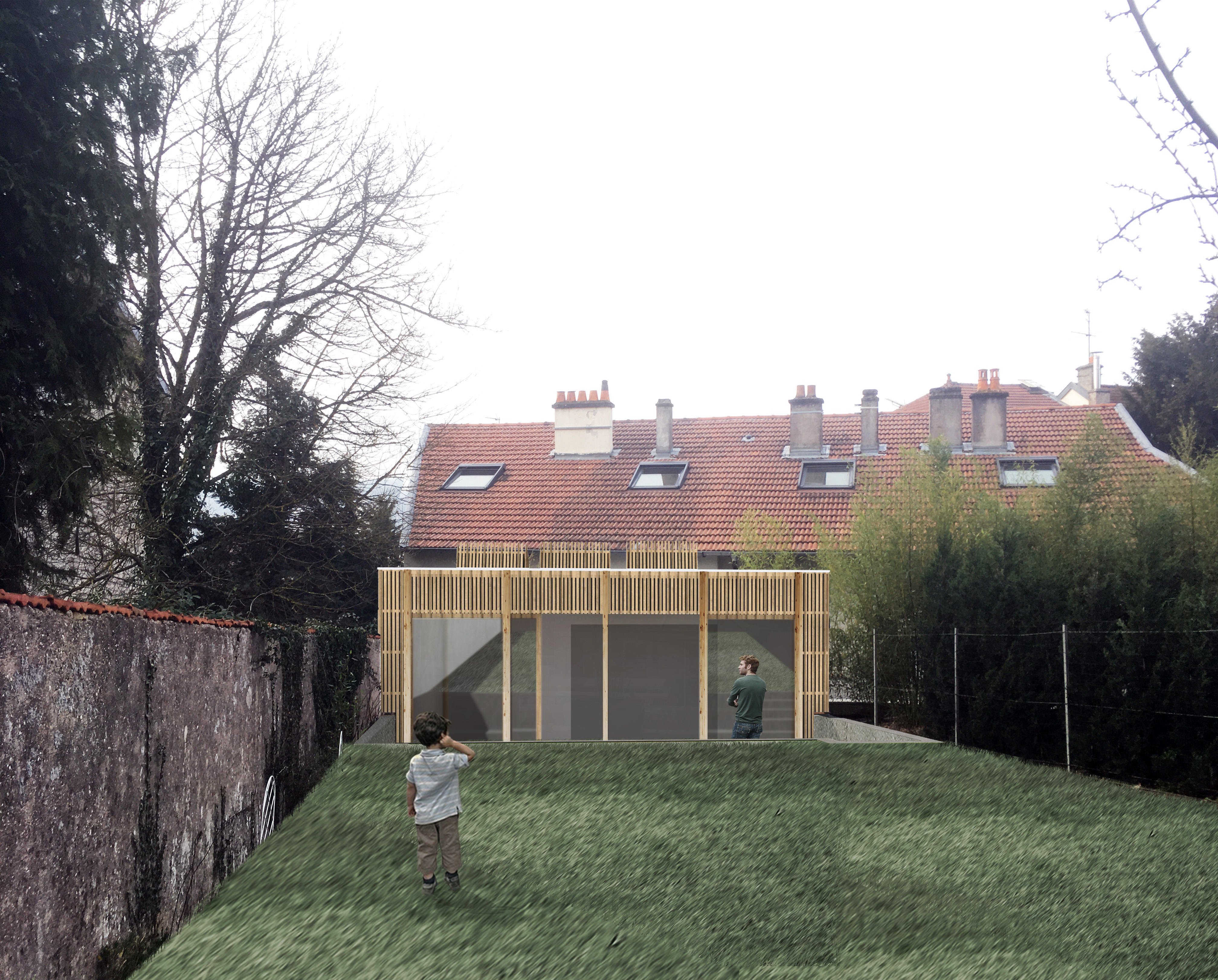 Le projet se situe à Laxou dans un terrain en pente. La rénovation et l'extension de la maison permettent une réorganisation des pièces afin de répondre aux besoins des propriétaires. Un espace extérieur est créé dans le prolongement de l'extension. Le choix du matériau bois s'est fait par volonté architecturale et pour répondre aux contraintes d'accessibilité du chantier. L'orientation au Nord permet de s'ouvrir généreusement sur le jardin. Trois puits de lumière sont créés afin préserver un apport de lumière naturel au centre de la maison.