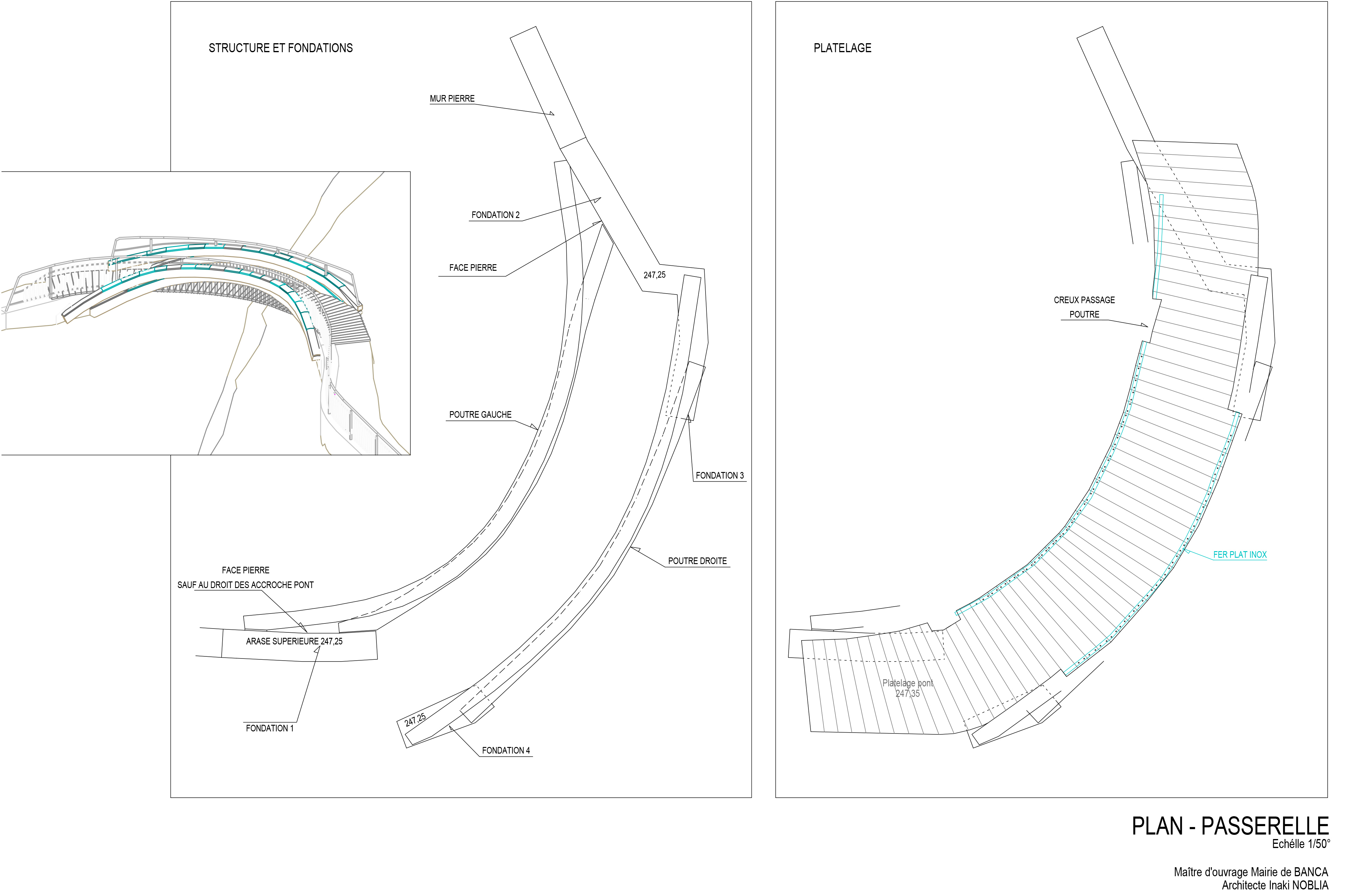 L'ouvrage est situé dans une pente très très forte et ne permet aucun accès en véhicule. Les arcs ont été préfabriqués en atelier, puis acheminés à pied et assemblés in-situ.