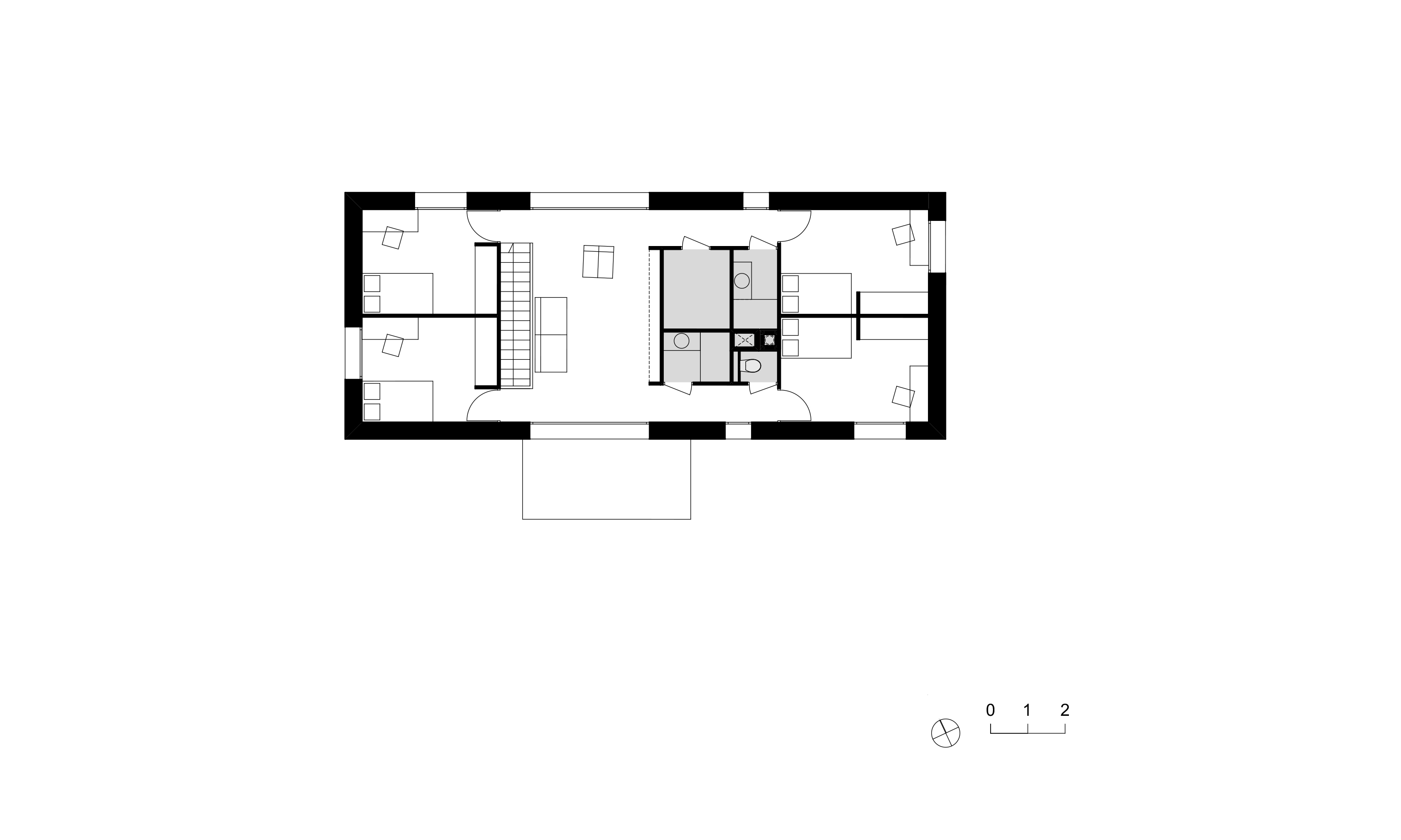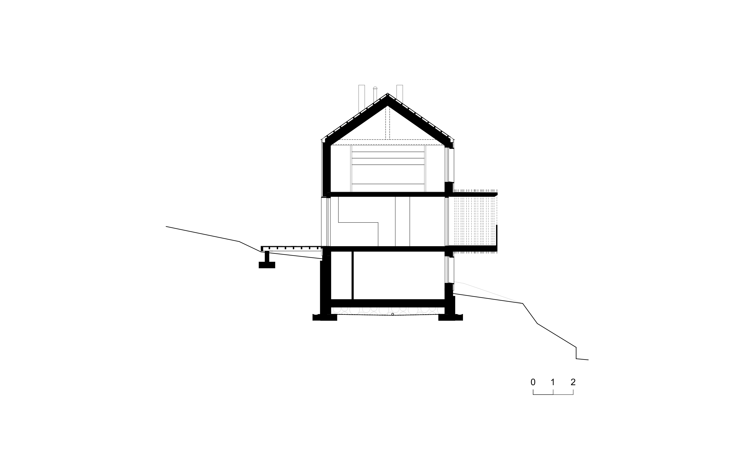 Descriptif technique : La maison se propose de donner à lire sa réalité constructive. Les murs structurels sont en béton. Ce matériau est laissé brut en finition intérieure. Il apporte de l’inertie aux espaces intérieures. La charpente est réalisée en bois de façon traditionnelle. L’ensemble des façades est revêtu d’un bardage bois. La mise en œuvre du bardage reprend les façades ancestrales du hameau. La toiture est conçue sans débord de toiture afin d’assurer un vieillissement homogène de la façade (aucune coulure). Les caniveaux sont intégrés dans l’épaisseur du bardage.