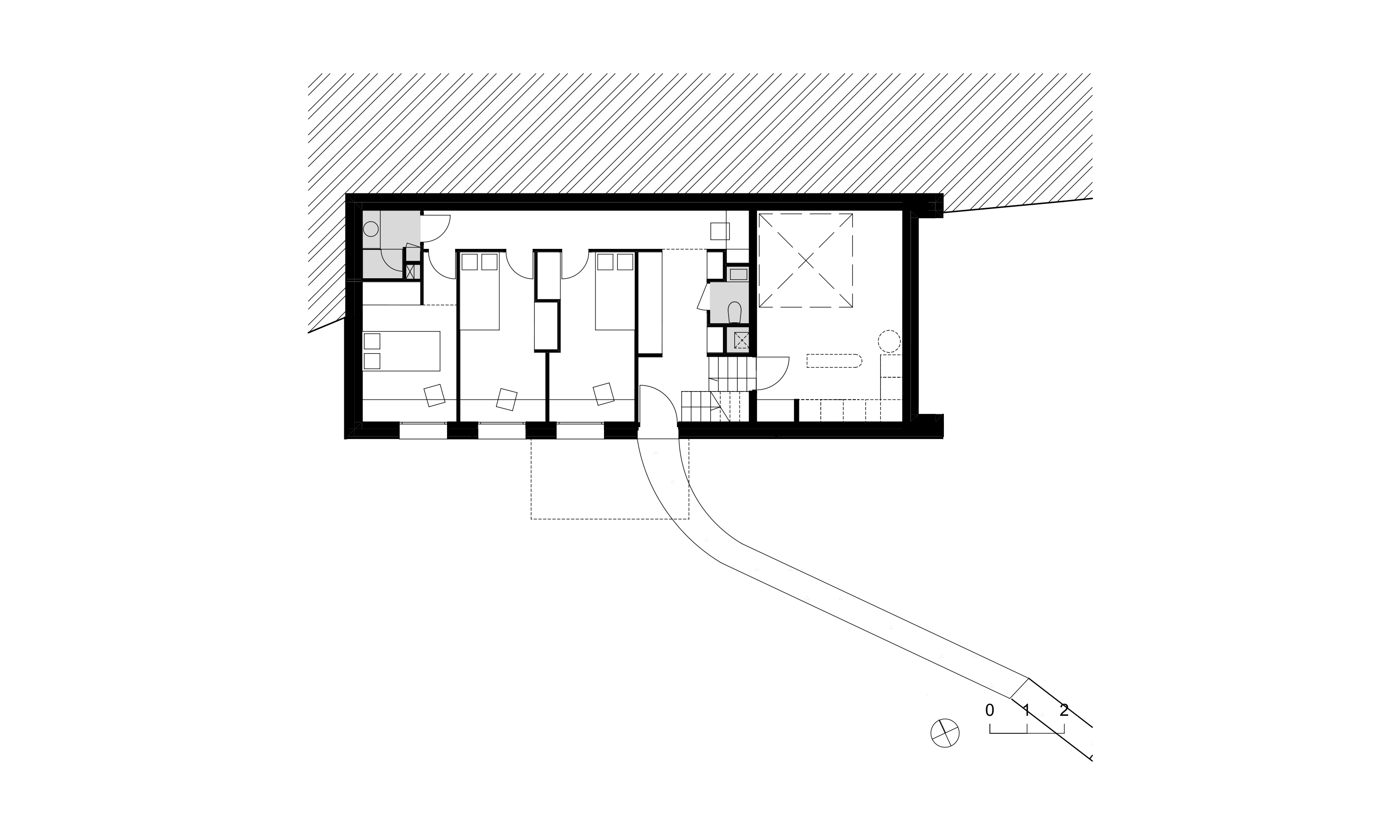 La maison vient se poser délicatement au plus près des courbes du terrain naturel. Sa plastique joue avec de multiples percements sur le grand paysage. Chaque façade est travaillée pour composer des variations équilibrées et organiser les espaces intérieurs vers les grands paysages alentours. Le bardage de façade régulier reprend le typage des maisons du village. La maison s’organise sur 3 niveaux dont un séjour/cuisine en demi-niveau afin de générer un espace de vie généreux au Sud, cadrant principalement sur le Néron. Un balcon en façade Ouest génère une entrée extérieure protégée.