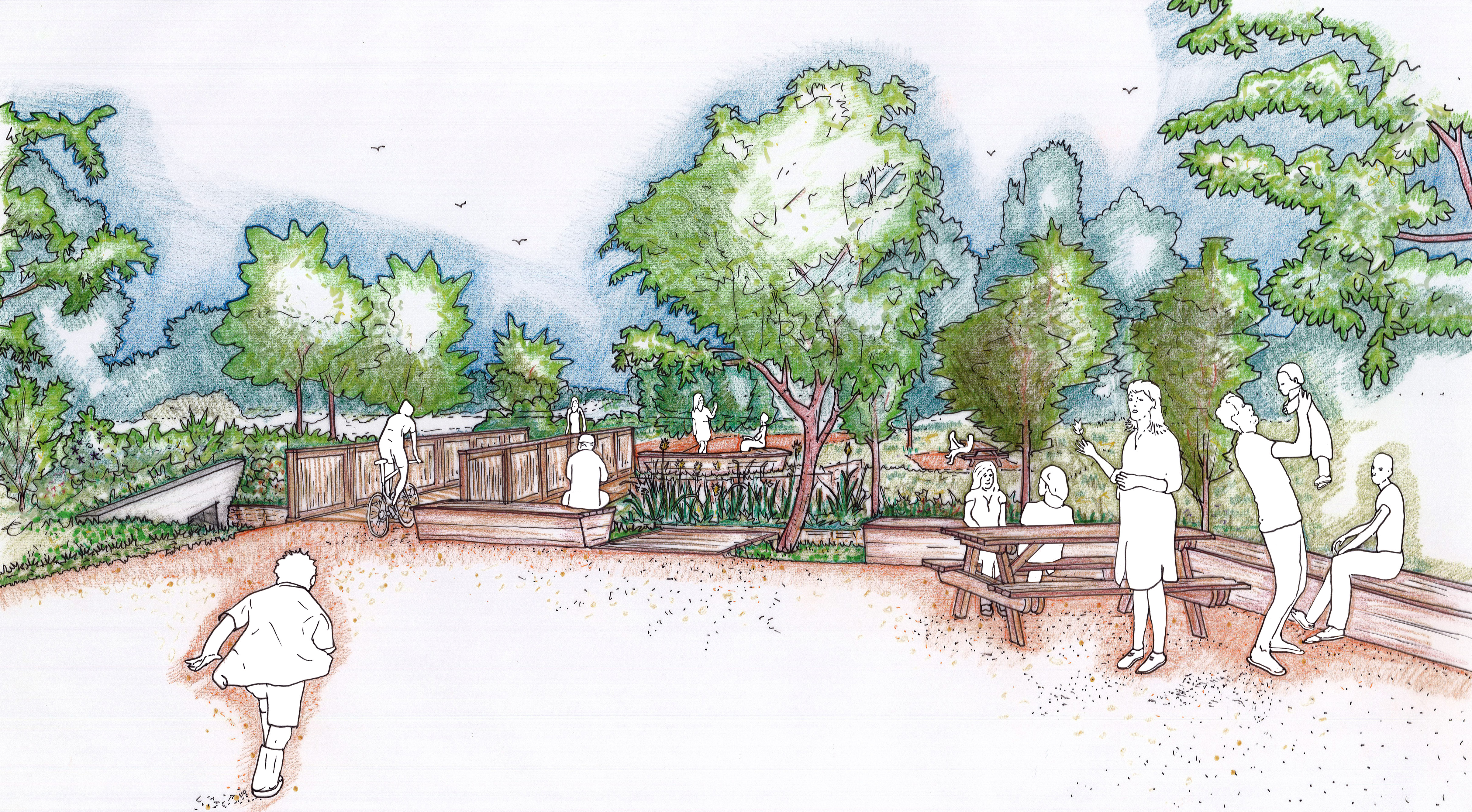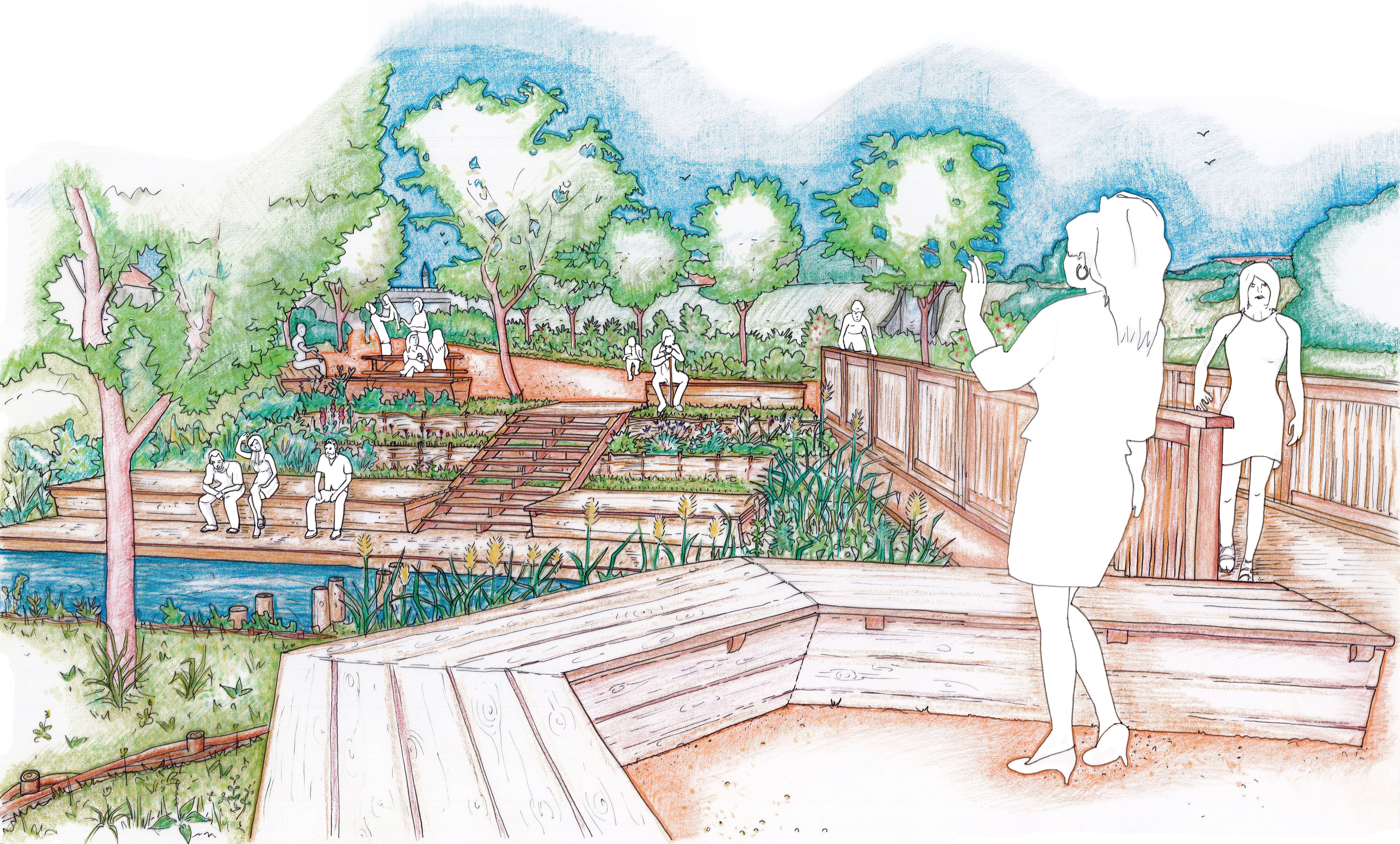 Renaturation des berges du ruisseau du Maréchat et développement d'un parc linéaire faisant la part belle aux aménagements paysagers et aux mobilités douces impliquant : - la démolition sur 50 m des dalots en béton endiguant le ruisseau pour retrouver un lit plus naturel. - des terrassements pour adoucir les berges afin d'en faciliter l'appropriation par la faune, la flore et les citadins. - la construction de gradins, mains courantes, scènes, assises, platelages en bois pour diversifier les usages, les rapports sensibles à l'eau et les possibilités de se détendre.