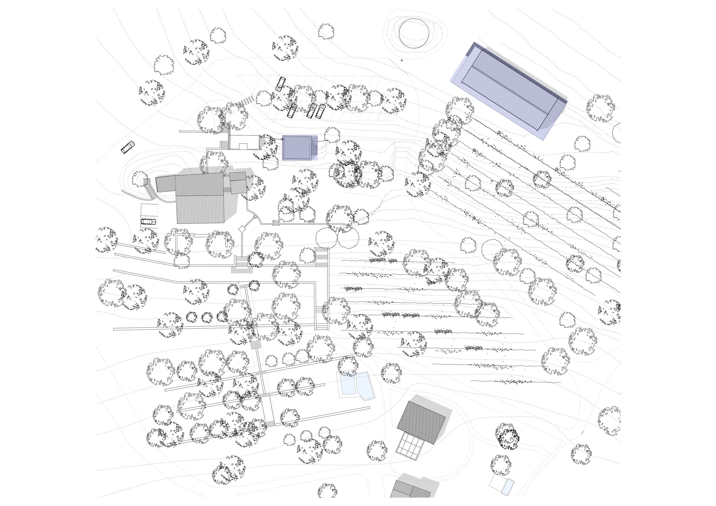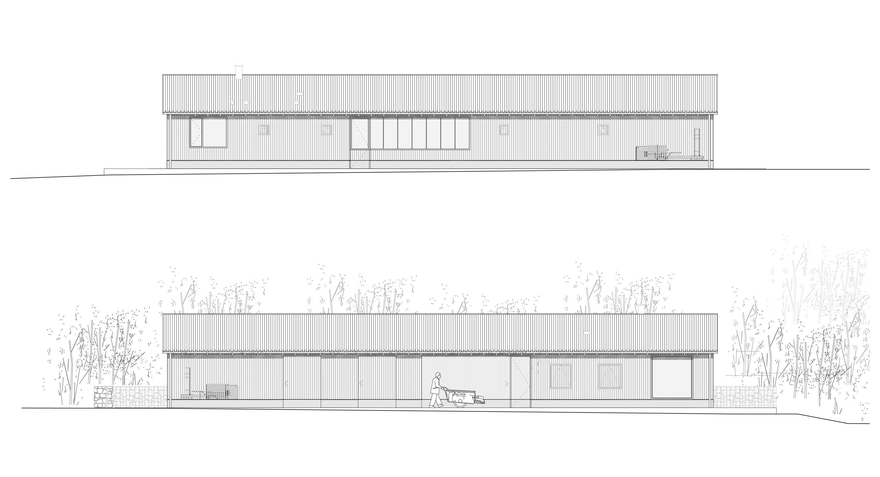 Un bâtiment unique avec une architecture vernaculaire agricole en ossature bois (Bois des Alpes) qui s'adapte et se transforme selon le programme. Il peut être très ouvert et ventilé pour le stockage du matériel et des engins, plus opaque mais ventilé pour le stockage des produits, opaque pour la chambre froide, translucide pour l’atelier et le garage, opaque avec cadrages sur le paysage pour la partie vestiaire, couchages et cantine.