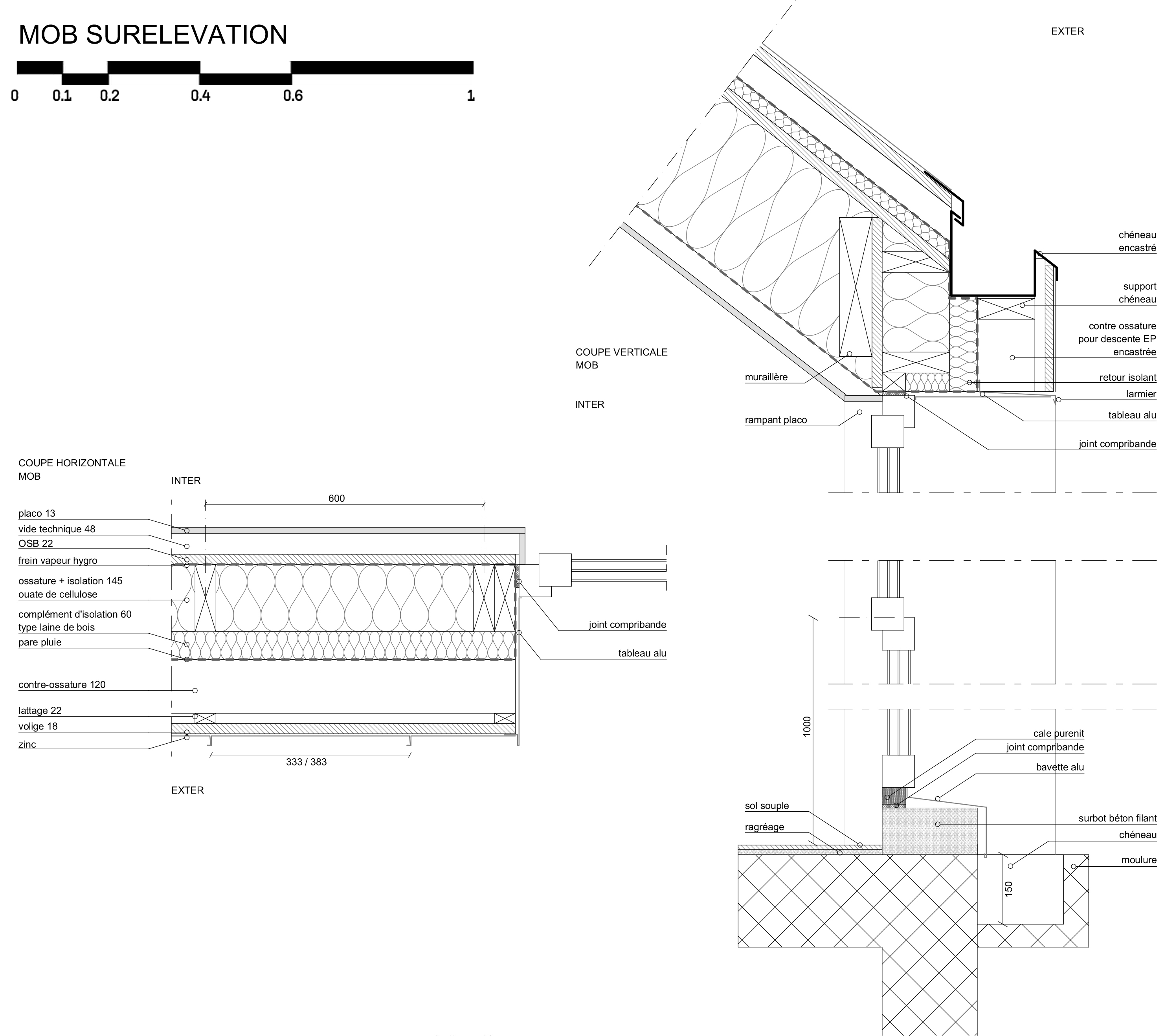 Descriptif technique : La surélévation est construite majoritairement en bois : - murs : ossature bois avec isolation intégrée - Charpente : bois lamellé-collé - la CTA double-flux à haut rendement permet de réguler parfaitement la qualité de l’air intérieur tout en limitant les déperditions thermiques Pour la rénovation de l'existant, utilisation de matériaux biosourcés : enduit-chaux