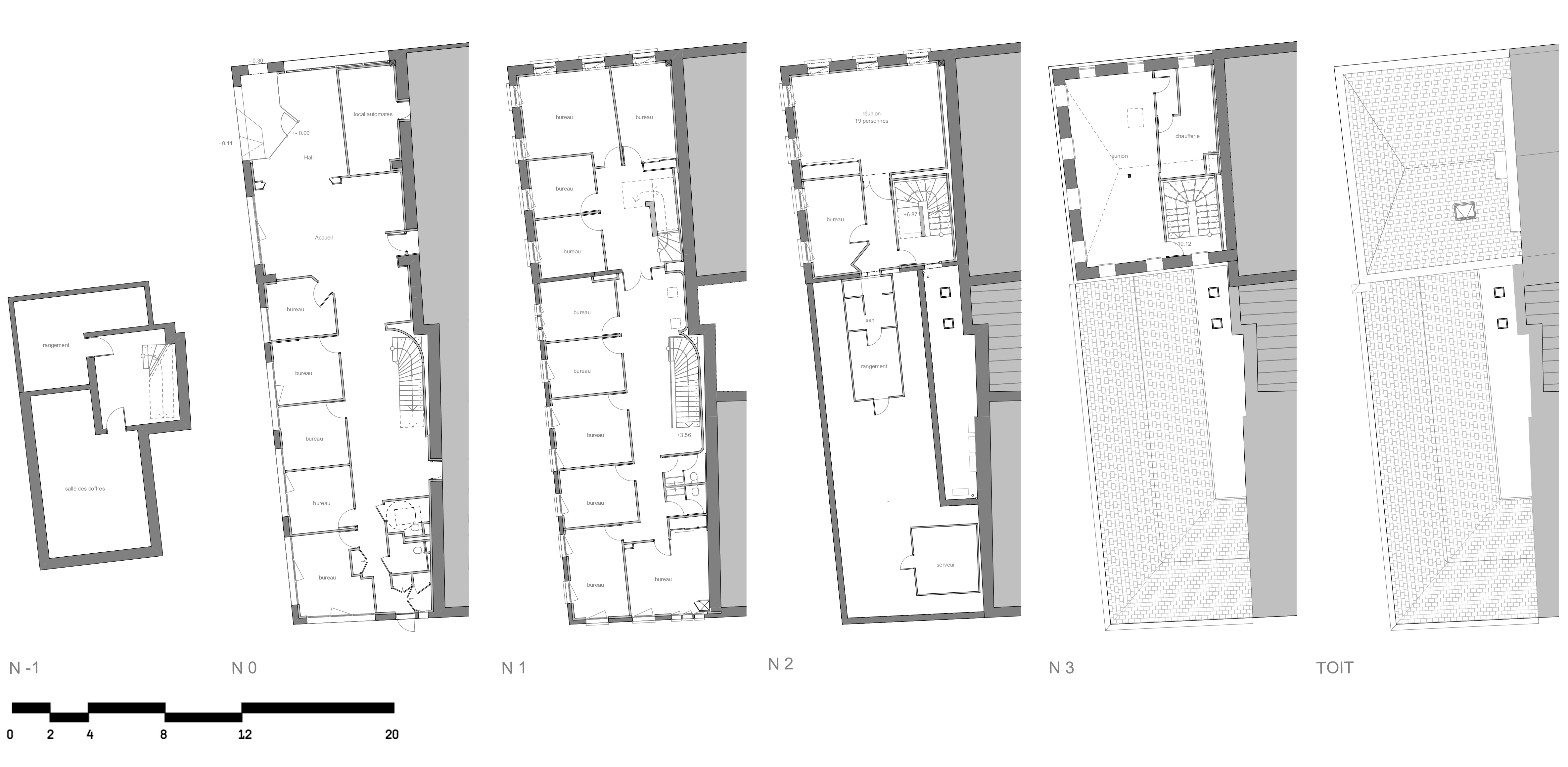 Le projet intègre une réhabilitation du bâtiment existant ainsi qu’une surélévation de la toiture du bâtiment à R+1. La réhabilitation vise à améliorer les conditions de travail pour le personnel de l’agence et de l’accueil du public, et à mieux intégrer l’identification de l’agence grâce à une signalétique sobre et unitaire. Le caractère historique du bâti en R+3 est mis en valeur grâce à la mise en œuvre de menuiseries reprenant les proportions de celles des bâtiments voisins. Au-delà du projet de construction, l’enjeu de cette opération est urbain. Il s’inscrit dans une logique de densification.