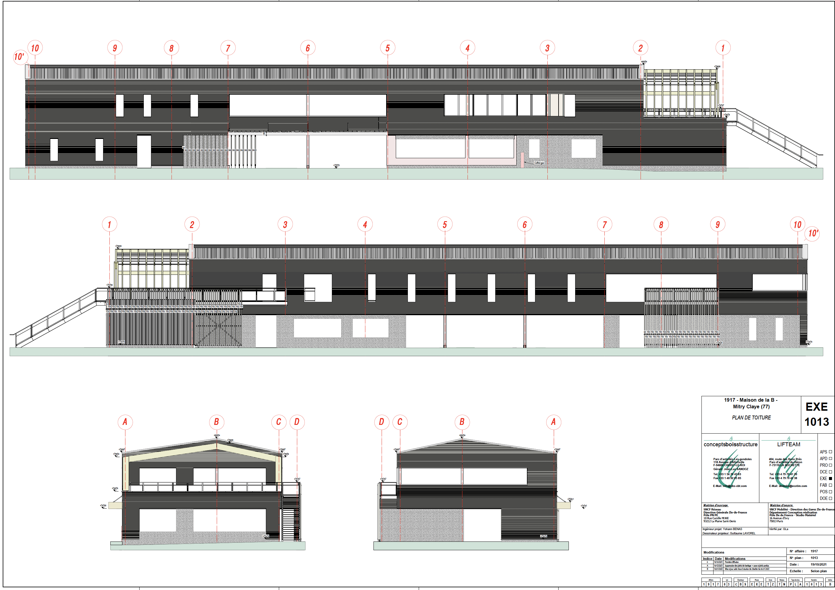 La loi de transition énergétique impose l’exemplarité énergétique et environnementale pour les nouvelles constructions sous maîtrise d’ouvrage de l’Etat. C’est le cas de la Maison de la B qui est livrée aux exploitants depuis septembre 2022. A côté du nouvel atelier de maintenance RATP du matériel roulant, au terminus de la ligne B du RER, la nouvelle Unité Opérationnelle de Mitry est un bâtiment R+1 comprenant les locaux de vie et les bureaux des équipes de conducteurs du RER et agents de manœuvres SNCF de l’Etablissement Traction Production de la ligne B, et un parking paysagé de 125 places