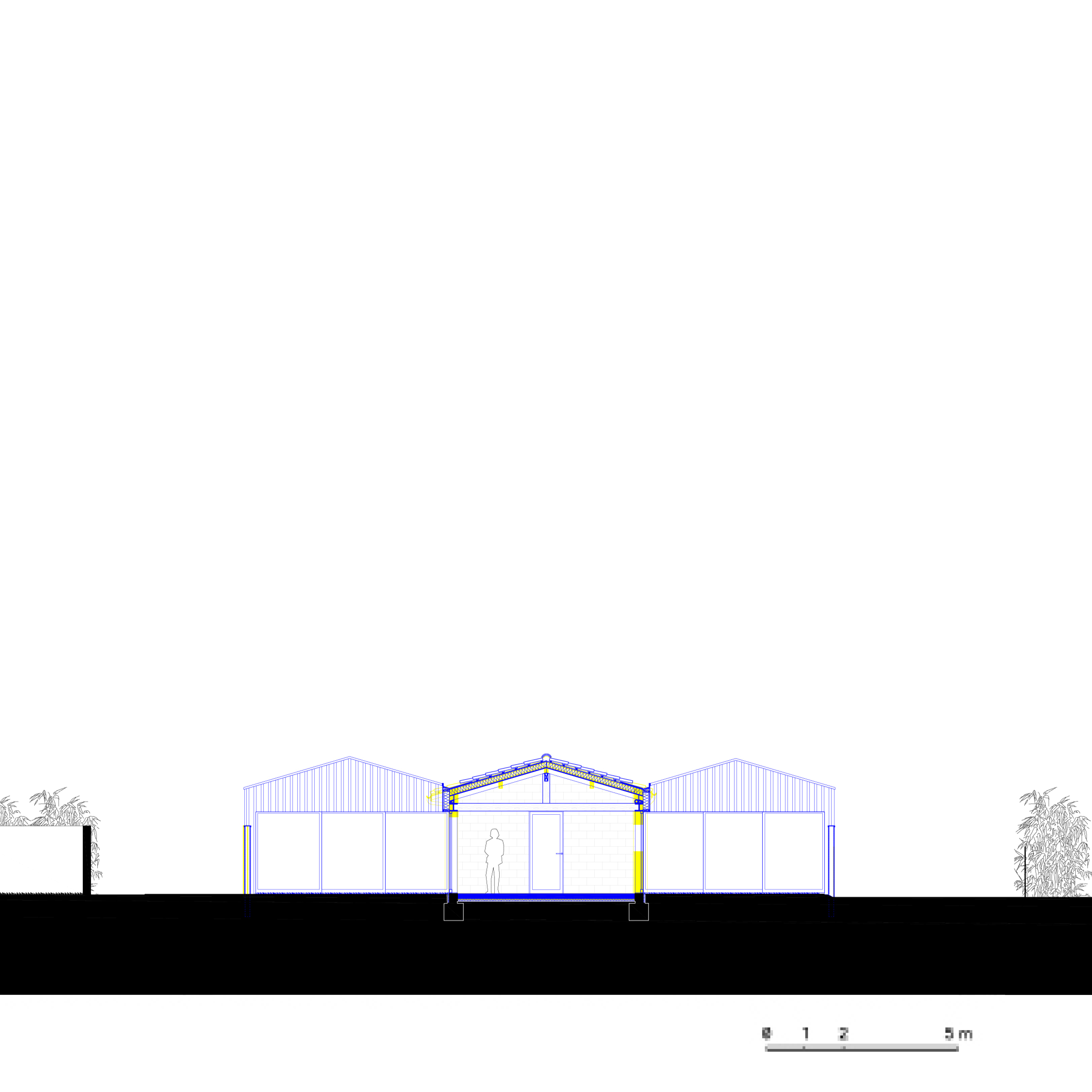 Le projet propose une transformation en densification par l’ajout de deux volumes latéralement au corps de bâtiment existant. Construits en continuité du pignon nord sur une profondeur de 5m, ils occupent toute la largeur disponible du terrain et créent deux jardins clos orientés au Sud dans une composition bâtie en T qui atteint l’emprise au sol maximale autorisée par le PLU de 60%. Les larges ouvertures réalisées dans les murs existant créent la transparence entre les deux jardins en Est/Ouest et organisent un espace de vie de plain-pied partagé entre intérieur et extérieur.