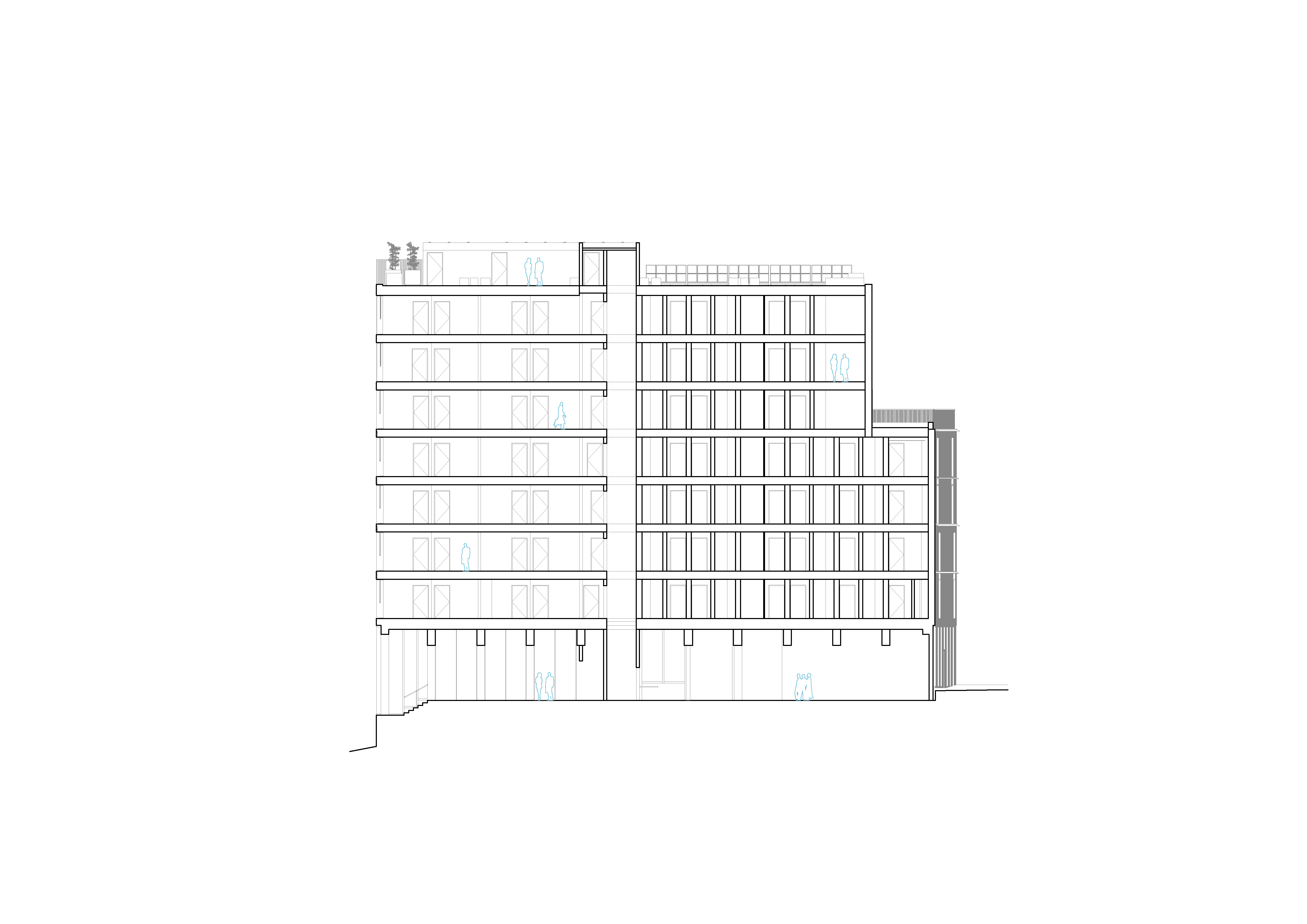 PE2 s’inscrit dans l’Ecoquartier Fluvial sur l’îlot PE dont EGA est Coordinateur. Le contexte des manifestations sportives, atout d’attractivité et d’identité de la future Place, nous a permis de concevoir une architecture réversible en 2 phases. La 1ere pensée pour accueillir le village des athlètes de 2024 avec 266 lits au sein de notre résidence (2 700 lits sur l’ensemble du secteur). Les rdc seront dédiés aux activités du CNO. La 2de phase verra le rdc se transformer en espaces communs généreux pour la résidence et en un commerce, les 7 niveaux en 134 appartements T1 et 8 appartements T2.