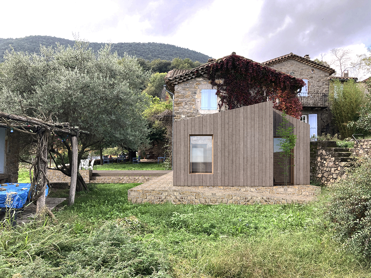 Ce projet vise à rendre accessible une construction historique afin d’y accueillir un enfant en situation de handicap. Nous prévoyons notamment l’extension de l’habitation, pour la création d’une chambre et salle d’eau en RDC, et l’aménagement d’une rampe d’accès au bâtiment. La volumétrie de l'extension est conçue de manière à respecter le savoir-faire traditionnel de la vallée du Galeizon. Elle s’implante en continuité de la façade sud de l’habitat existant. Et est composée de formes simples et surplombé d’une toiture à deux pans. Elle s’accole au volume existant, sans l’impacter.