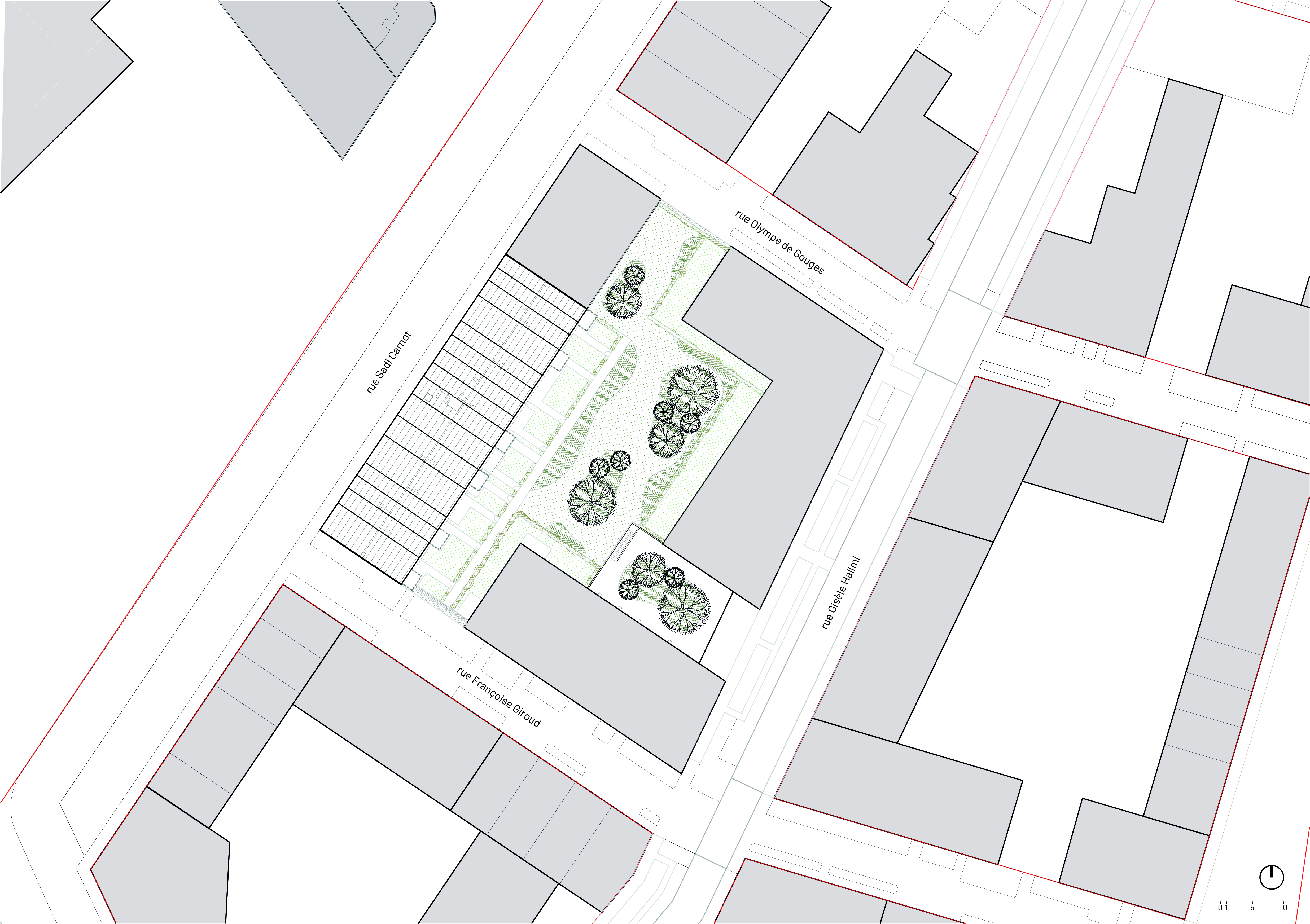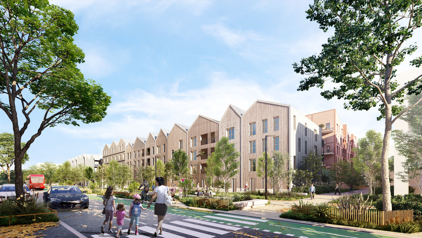 Situé dans le nouveau quartier "Quai 22" à Saint-André-Lez-Lille, ce bâtiment en structure 100 % bois accueille 29 logements, du studio au T4. Posé sur un socle technique, il s’ouvre sur un vaste cœur d’îlot paysager, apportant fraîcheur et biodiversité. Dix logements traversants bénéficient d’un espace extérieur engazonné. Le travail des toitures, inspiré du passé industriel du site, génère des volumes variés sous rampants. Ce projet s’inscrit dans une démarche bas carbone, alliant qualité de vie et intégration environnementale.