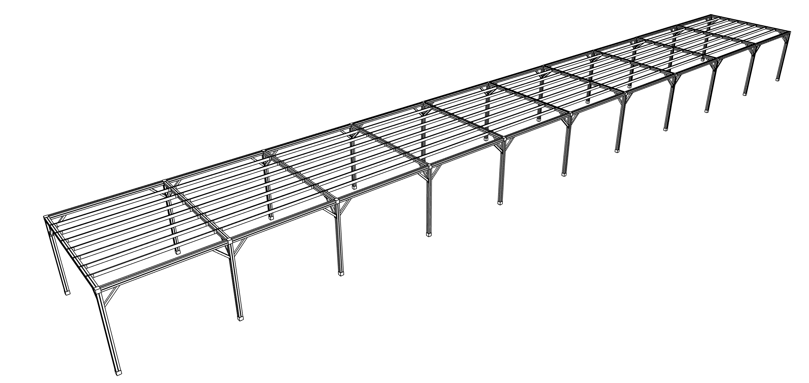 Nos pergolas se distinguent par leur modularité, permettant une configuration flexible et évolutive. Pour faciliter le montage et le démontage rapide. L'ossature est composée de poutres en bois brut Douglas (PEFC/FSC) assemblées à l'aide de connecteurs en acier (noix), garantissant à la fois solidité et adaptabilité. Les poutres sont munies de goujon M16 et l'assemblage se fait par boulonnage de la noix sur la poutre. Toiture en lames ajourées favorisant ventilation et facilitant l'installation d'ombrage design. Conception écoresponsable, sans traitement chimique, assurant une intégration harmonieuse et un réemploi total des matériaux.