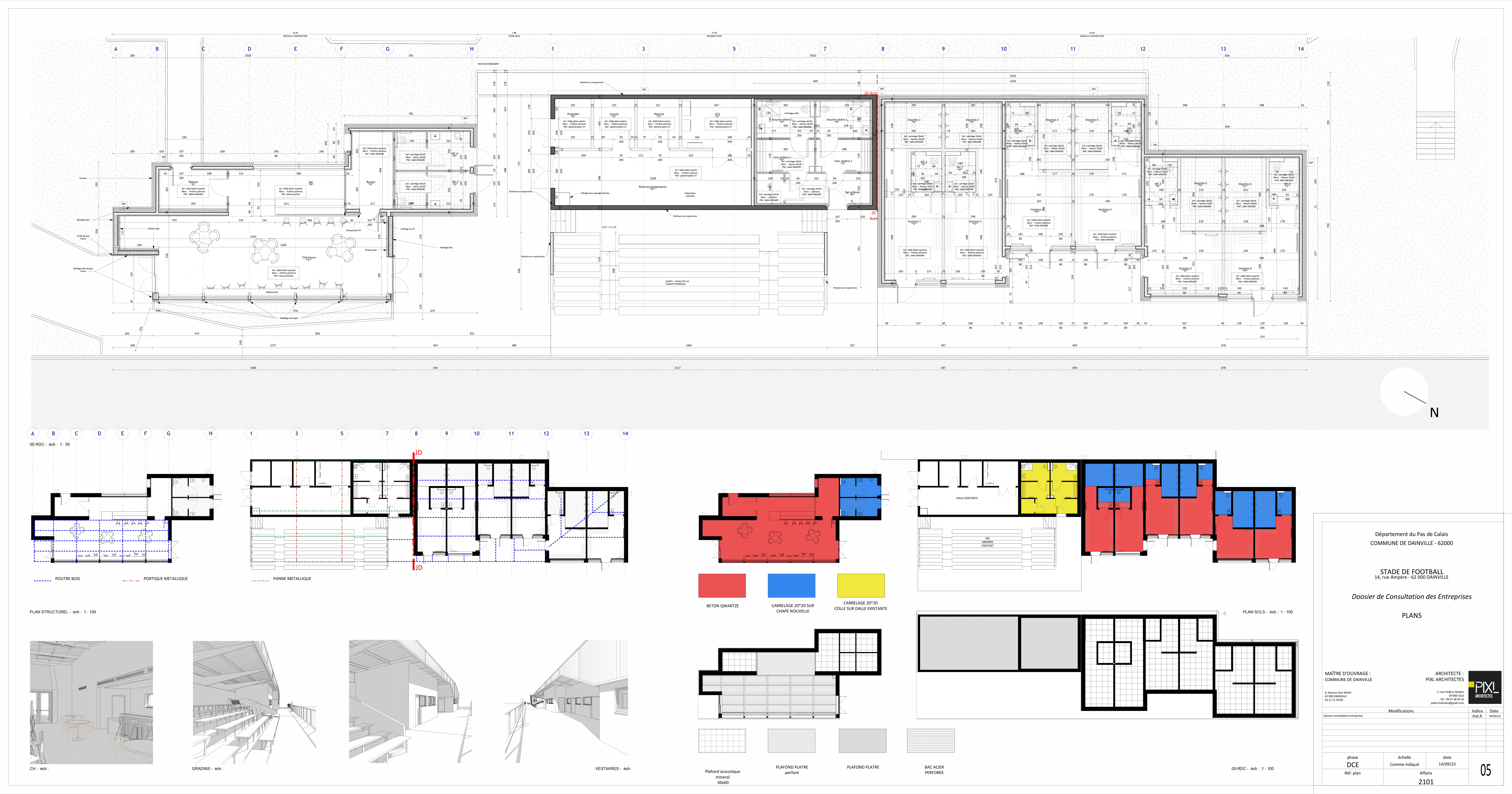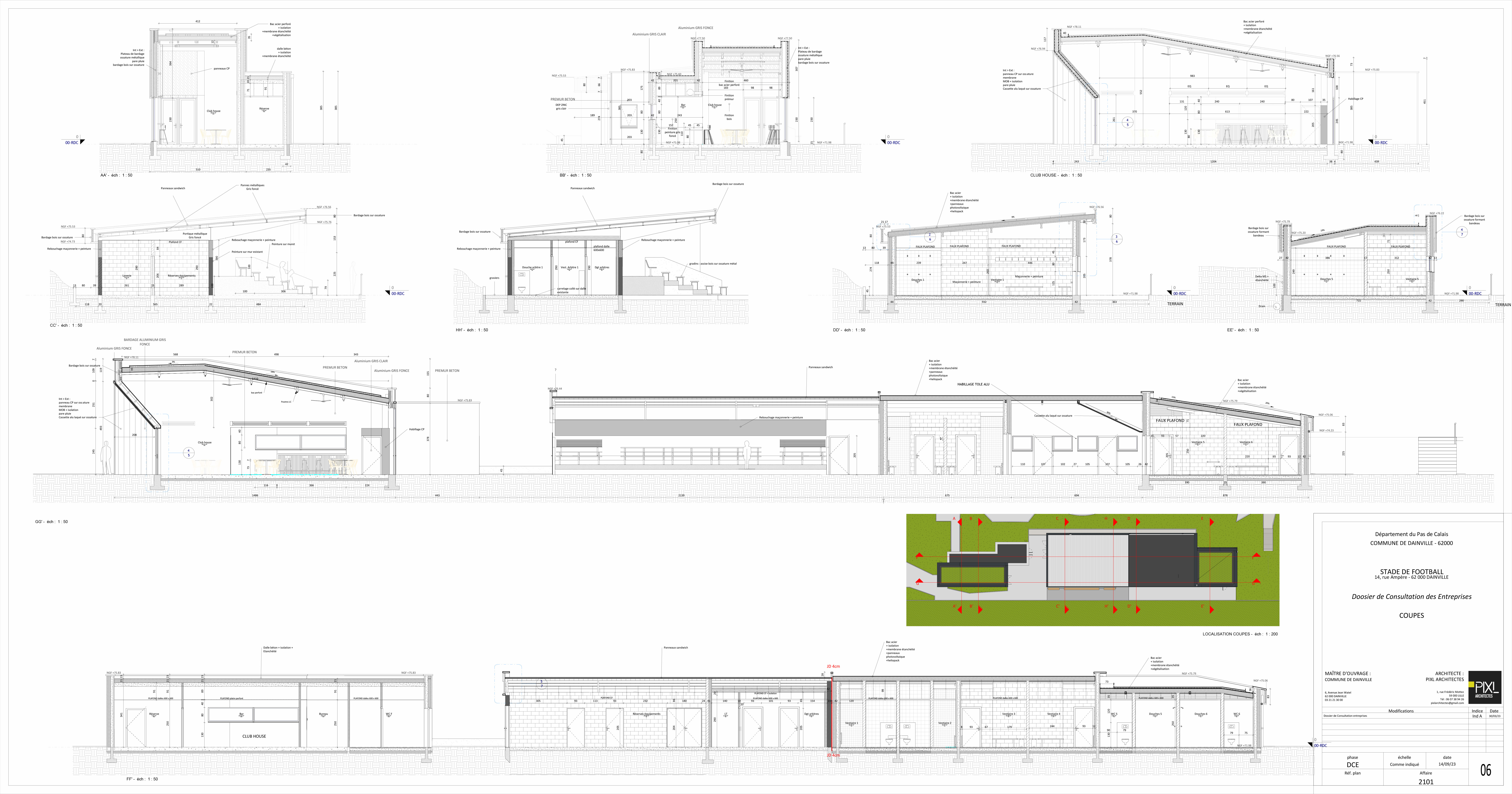 Livraison de la réhabilitation et l’extension des vestiaires club house du club de Football de Dainville. L’extension du club house et des vestiaires a été conçue pour s’articuler harmonieusement avec le bâtiment existant, tout en lui apportant une nouvelle dynamique architecturale. L’unification des matériaux et des volumes, ainsi que la création d’une façade sud largement vitrée, confèrent au bâtiment une identité forte et une grande cohérence esthétique.